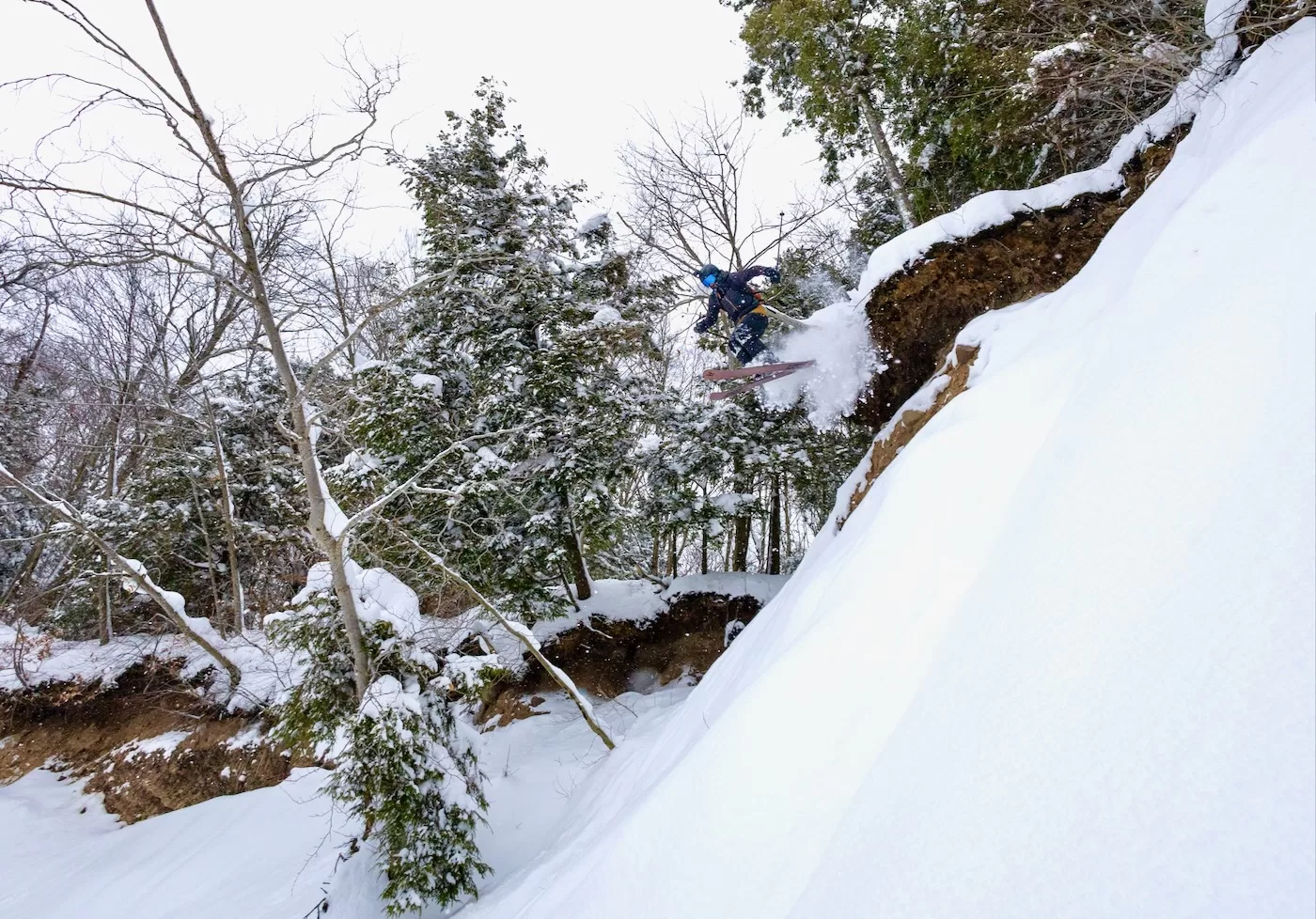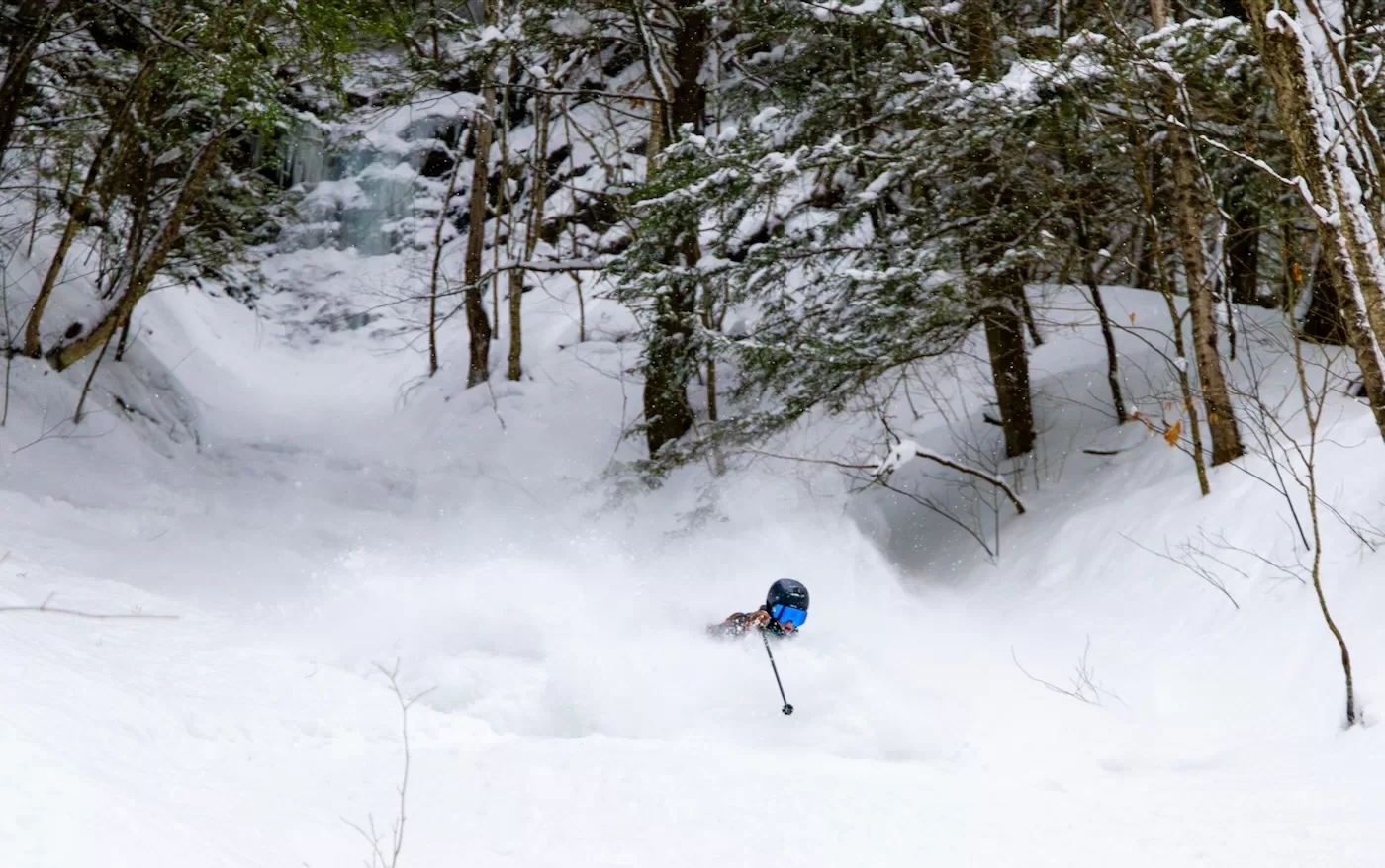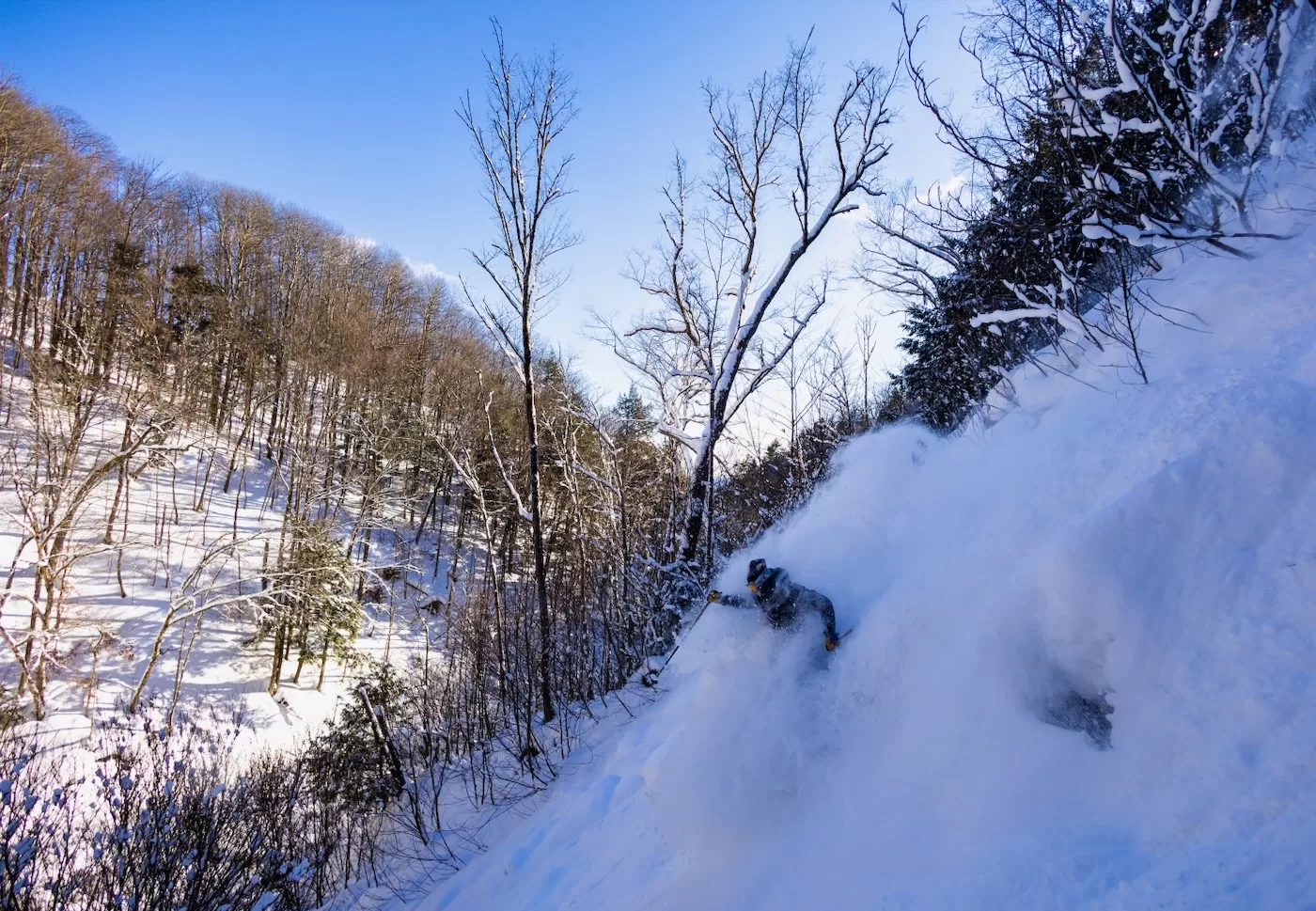 On the first morning of the new year, my brother Bailey and I pulled up to Snow Ridge around 8:30. The conditions report said they got 6” overnight, about what we expected. The sky was blue and the air was a crisp 20 degrees. We met up with an Adirondack local Ben in hopes of showing him some of our favorite wooded lines around the area.