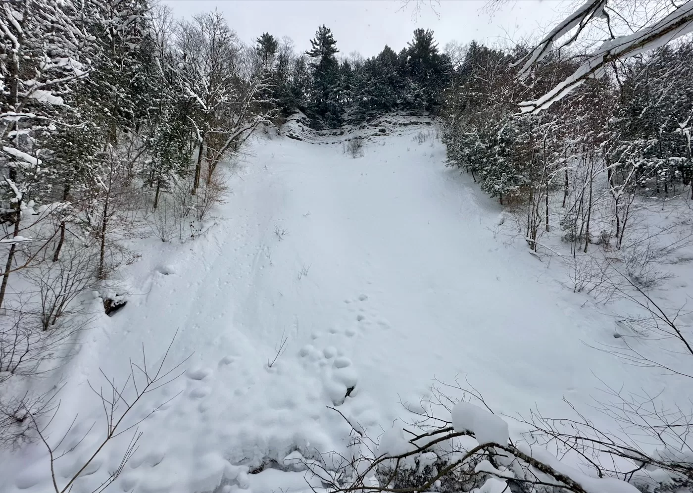 The next day, we headed into the heart of the storm. Oswego County was getting nuked with snowfall, with rates above 3” per hour. Although there isn’t much vertical in the area, there are a couple spots that are skiable with enough snow. I’ve known of a “bowl” for a couple years, but have never skied it. In recent years lake effect bands have missed it. This time, the storms aligned and dumped right on the spot, and it was a day of exploration for us all.