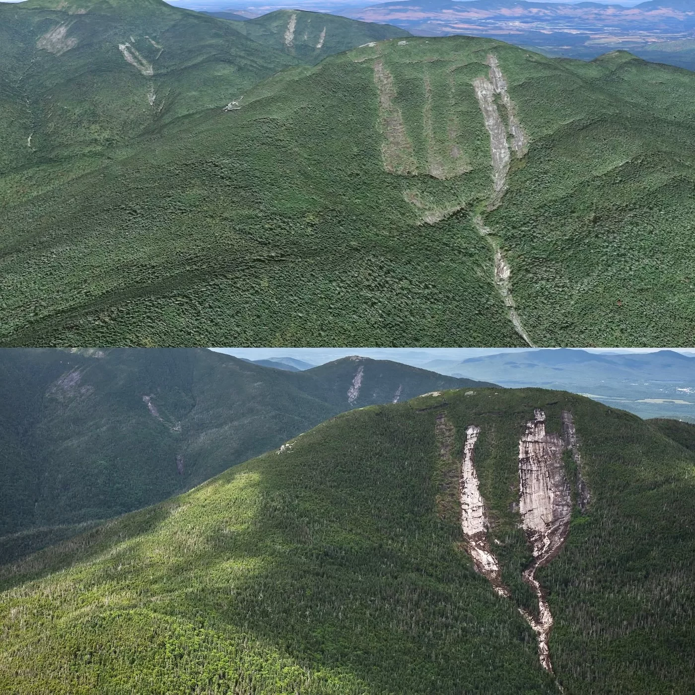 Oddly, although minor slides occurred in other places around the High Peaks, Mount Colden was the most affected, three new slides formed and many other reslid or were widened. This was likely the result of a microburst, which forced heavy rain and wind down within a localized area, Mount Colden.