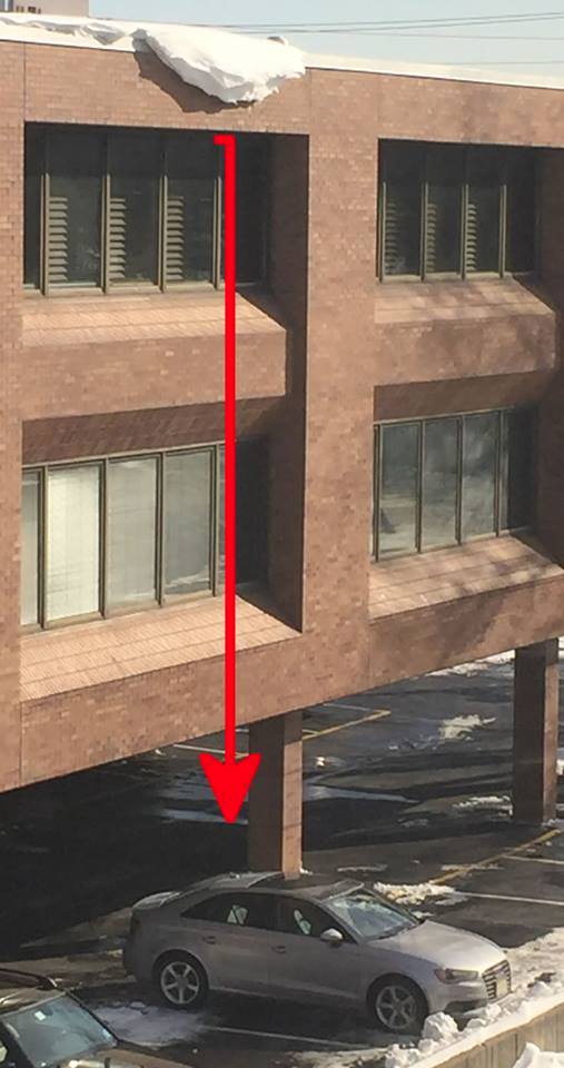 This was the view from my office window to the building next door a few years ago ...Scene safety is a concept lost with so many people. We just had to tell the neighbor that they shouldn't park so close to being under the buildings overhang because of the giant icicles that were going to fall onto their car.