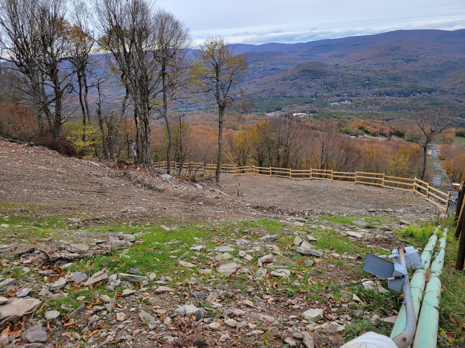 Why a wood fence? Whatabout using the orange netting?It looks like the new trail is done.
