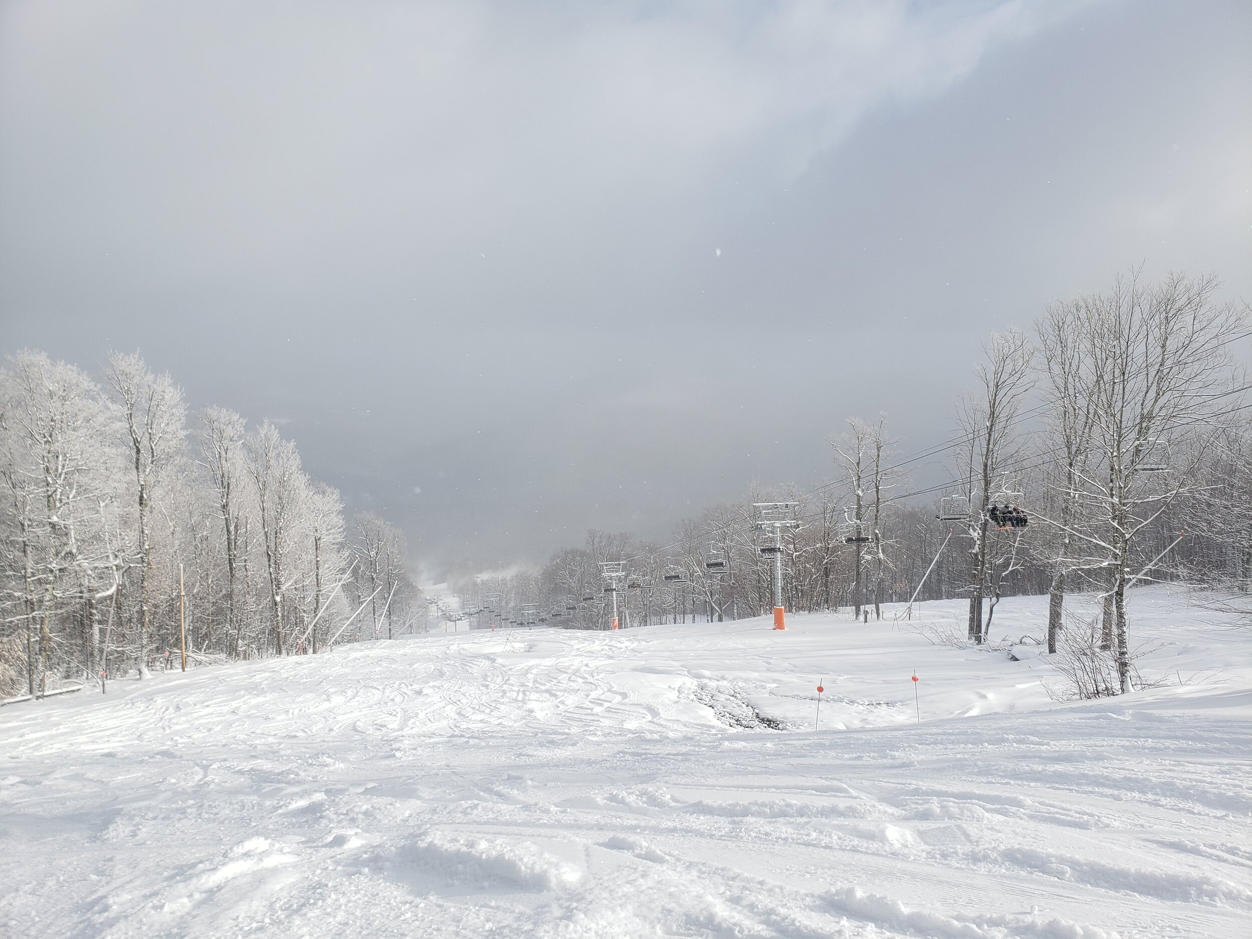 That must have been some Wind for the snow to make it from Dot all the way to Belleayre run. Triple is now a Quad with a steep ass mid station off loading ramp.Bell was interesting today....First the bathrooms are working in Overlook..