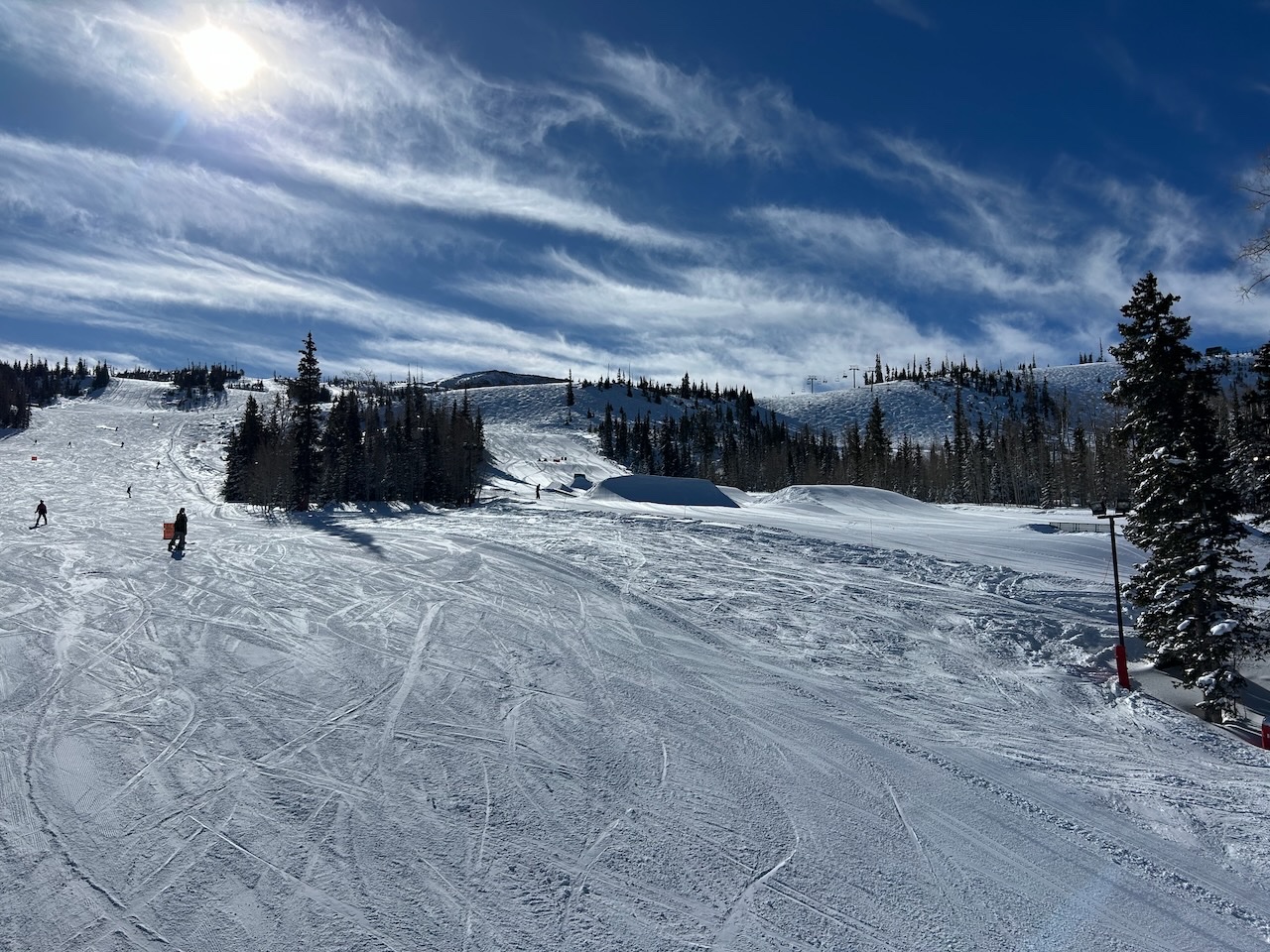 Like the rest of Utah, there wasn't much snowfall at Brian Head in January and into mid-February so it's a low snow winter. Was not quite 60% of average as of mid-March. However, there was a big, cold snowstorm that dropped over 2 feet of good snow March 13-15 just before we went. Temps stayed cold for about a week after that snow cycle.