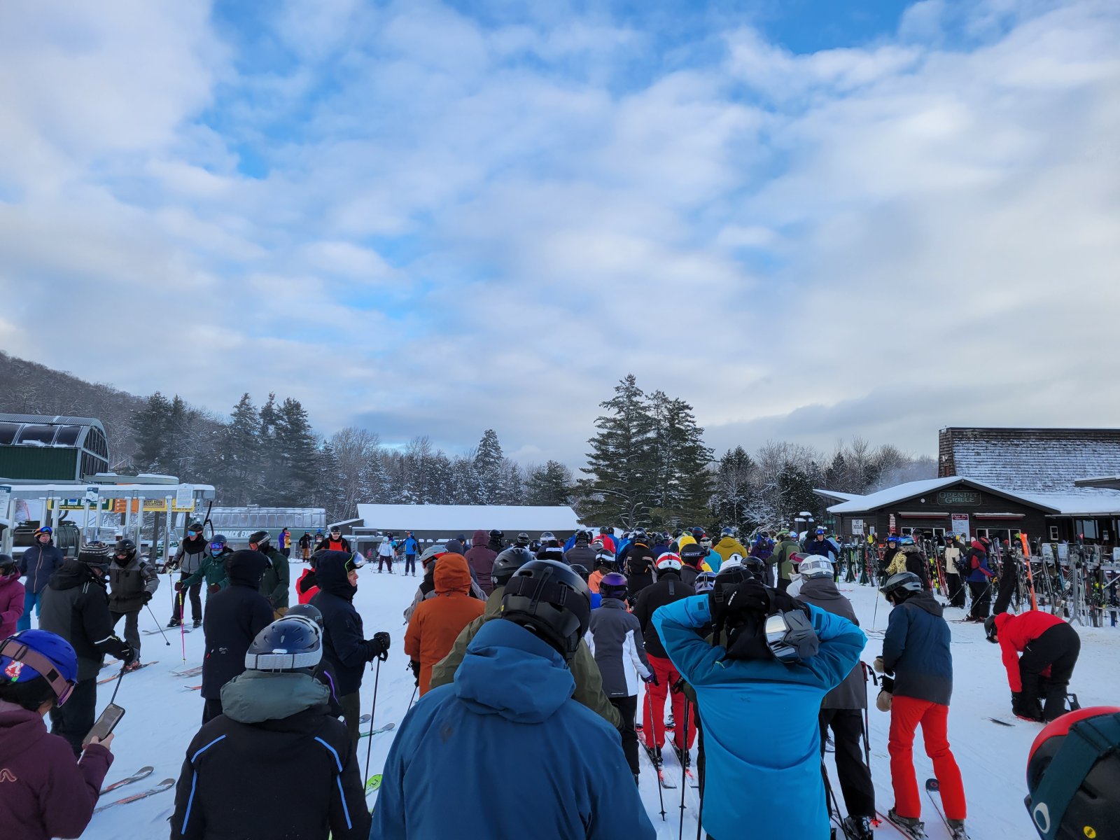 This was the queue to get to High Peaks chair around 9:20 Saturday morning,. Went all the way up the hill into Upper Wood In. Next lap there was no line at all. 🤷‍♂️