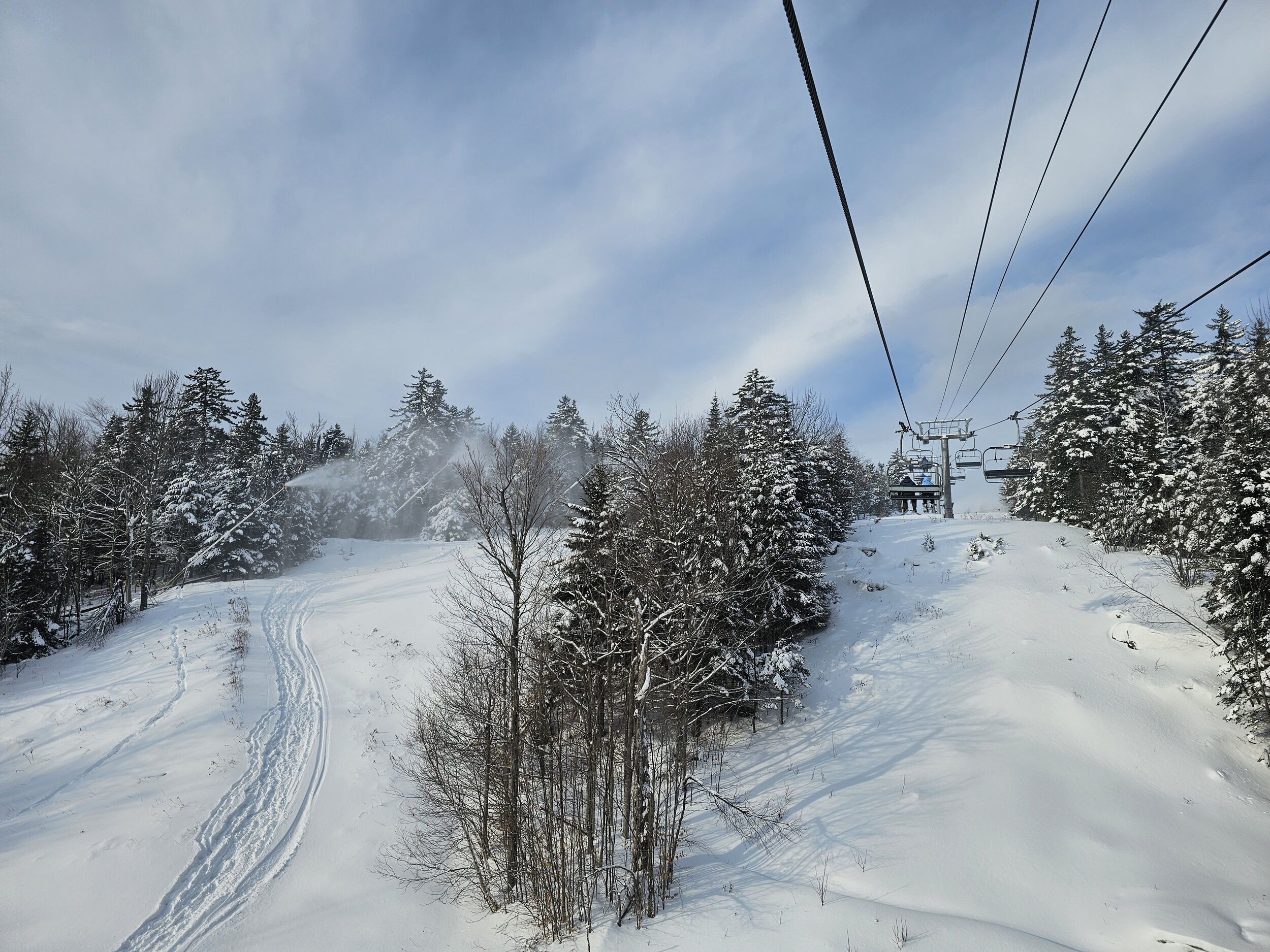 Had an interesting day at Gore on Friday. Drove right to Ski Bowl, which was a wise decision, as we heard that lot D was full before 9 am (when is that parking lot webcam going up?). Did some laps at Ski Bowl and worked our way up, skied all the upper mountain pods, finished up with a top to bottom run including ungroomed natural on Woodchuck, Wood Out, Pete Gay and Pipeline. It wasn’t an active decision not to ski the front side, but we never saw the main lodge all day. Can’t say that I missed it.