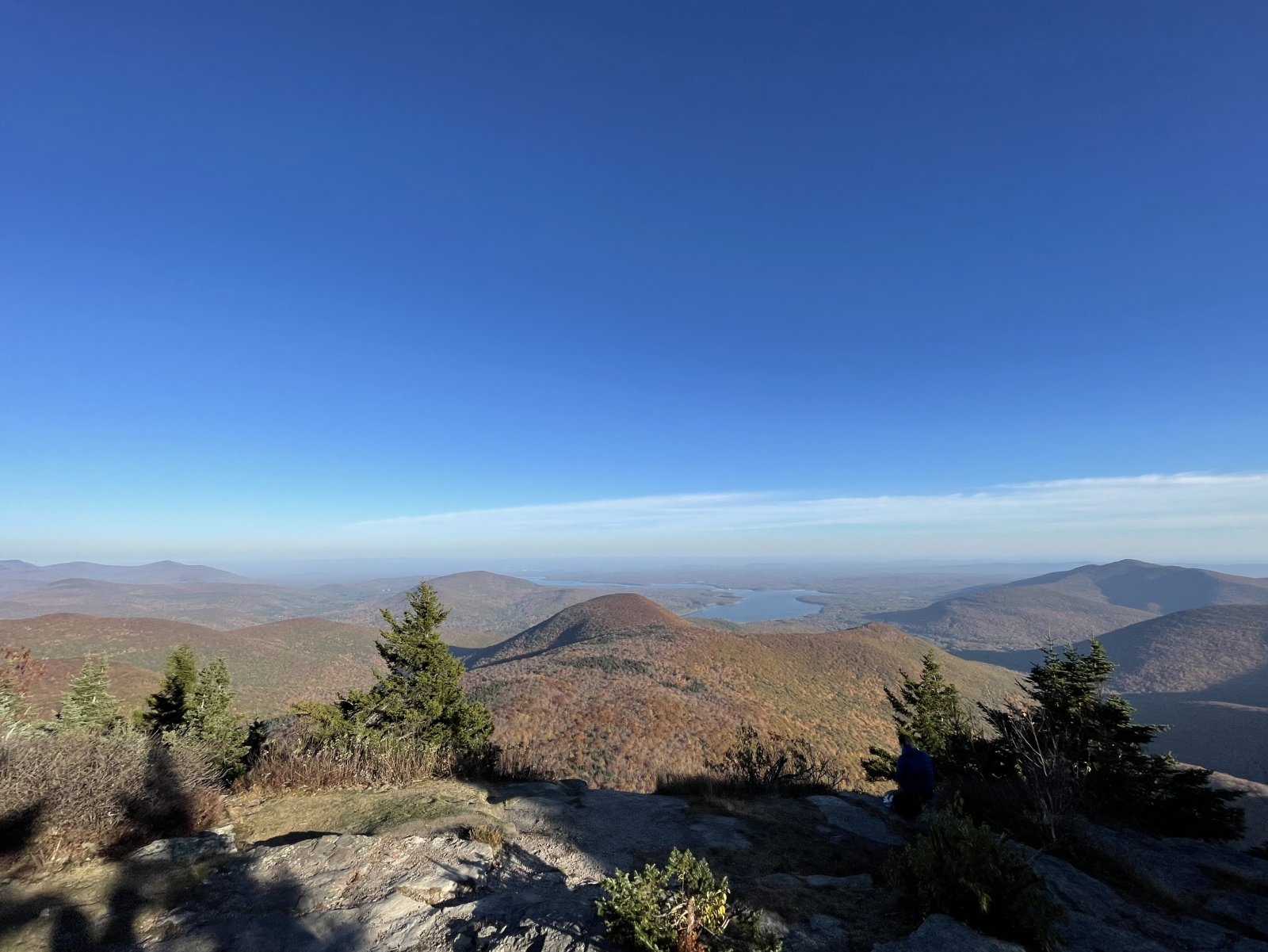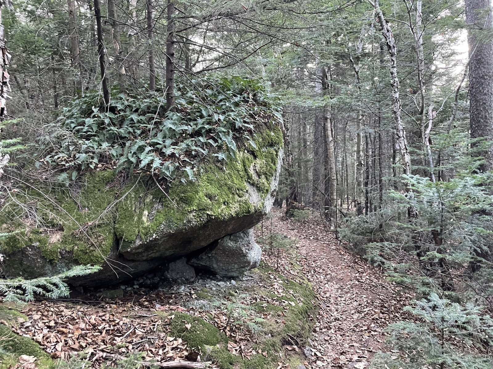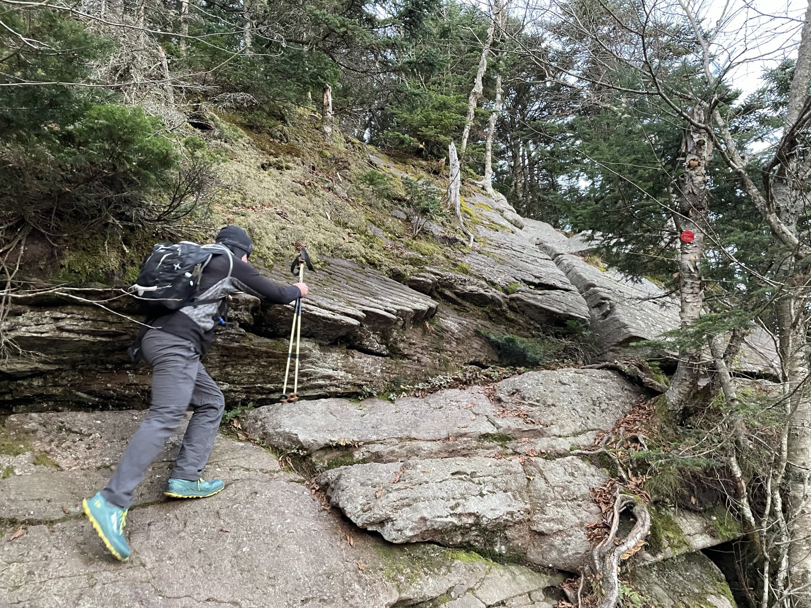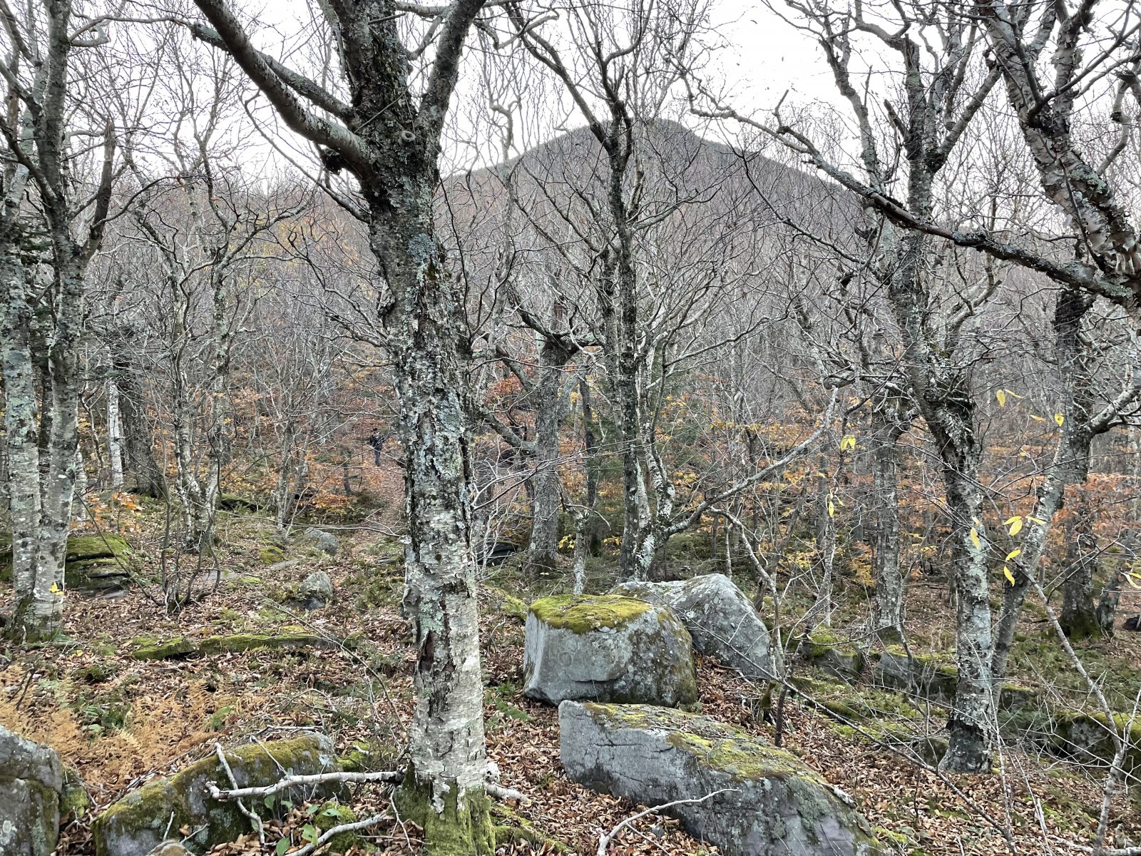 Freshly fallen ankle deep leaves covered fist sized rocks on the way down. I was exhausted and could barely pick up my feet. At one point I fell asleep and caught myself, waking up just before I hit the ground.