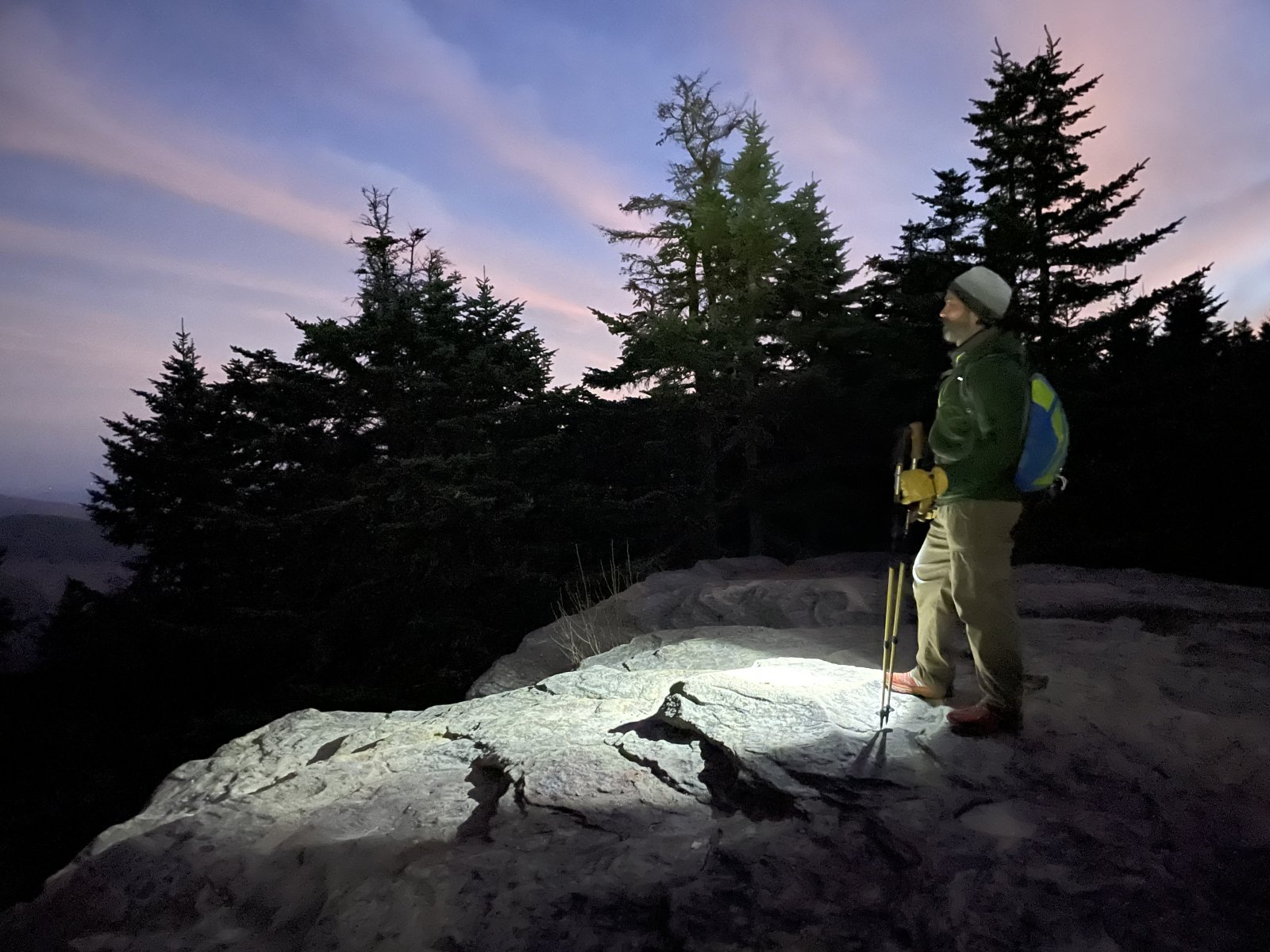 6:15pm; We made it to the spring just below the summit with the sky dyed in Easter egg colors.