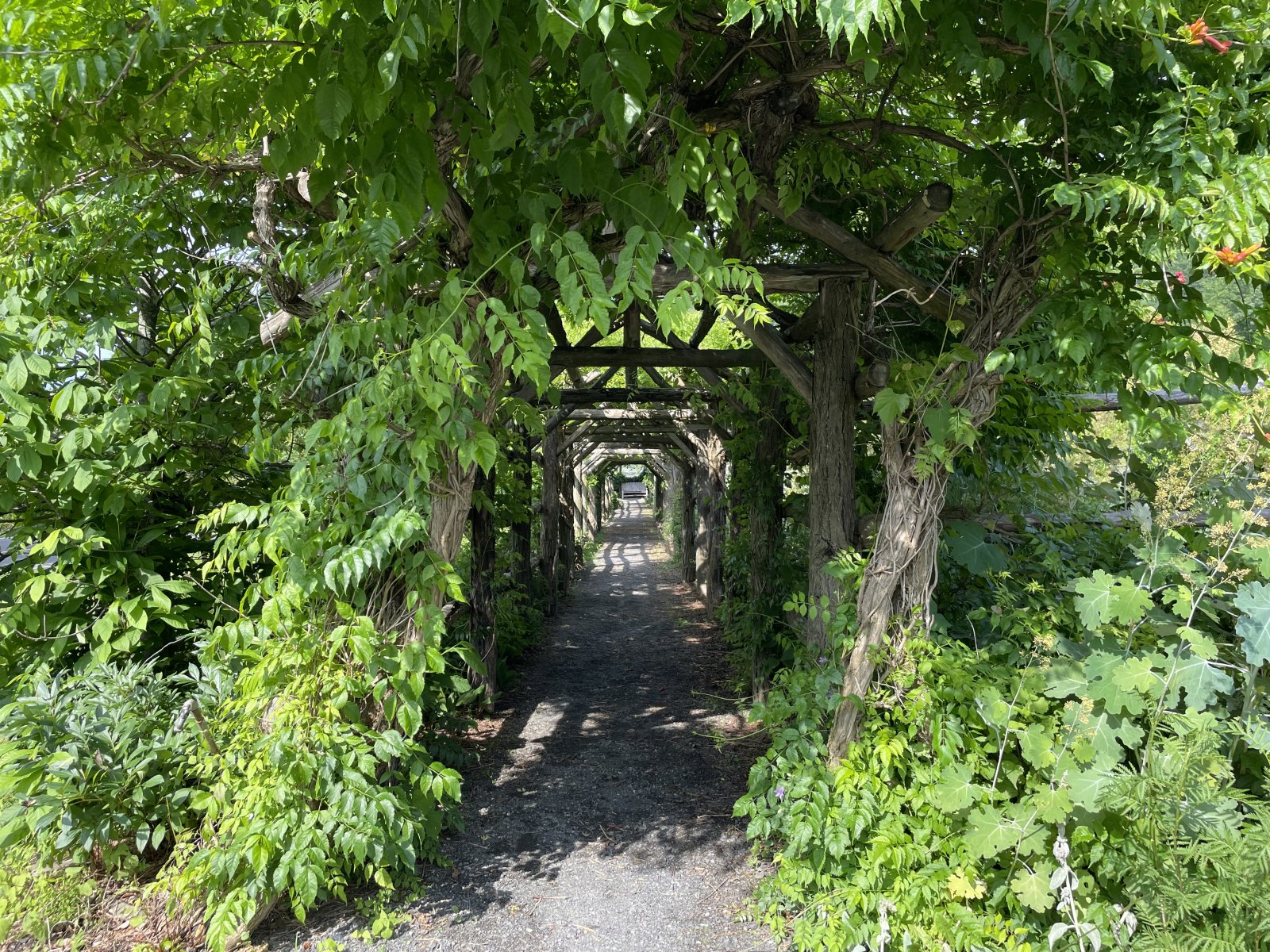 It’s actually our native trumpet vine Campsis radicans. The flowers can be seen in the upper right corner. The leaflets are very similar to wisteria. I would caution anyone planting either one as they can become extremely invasive. They should be planted near concrete or where the suckers can be mowed to keep them in check. There are several different types of wisteria. The American variety, Wisteria frutescans is known to be less aggressive and would be preferred.