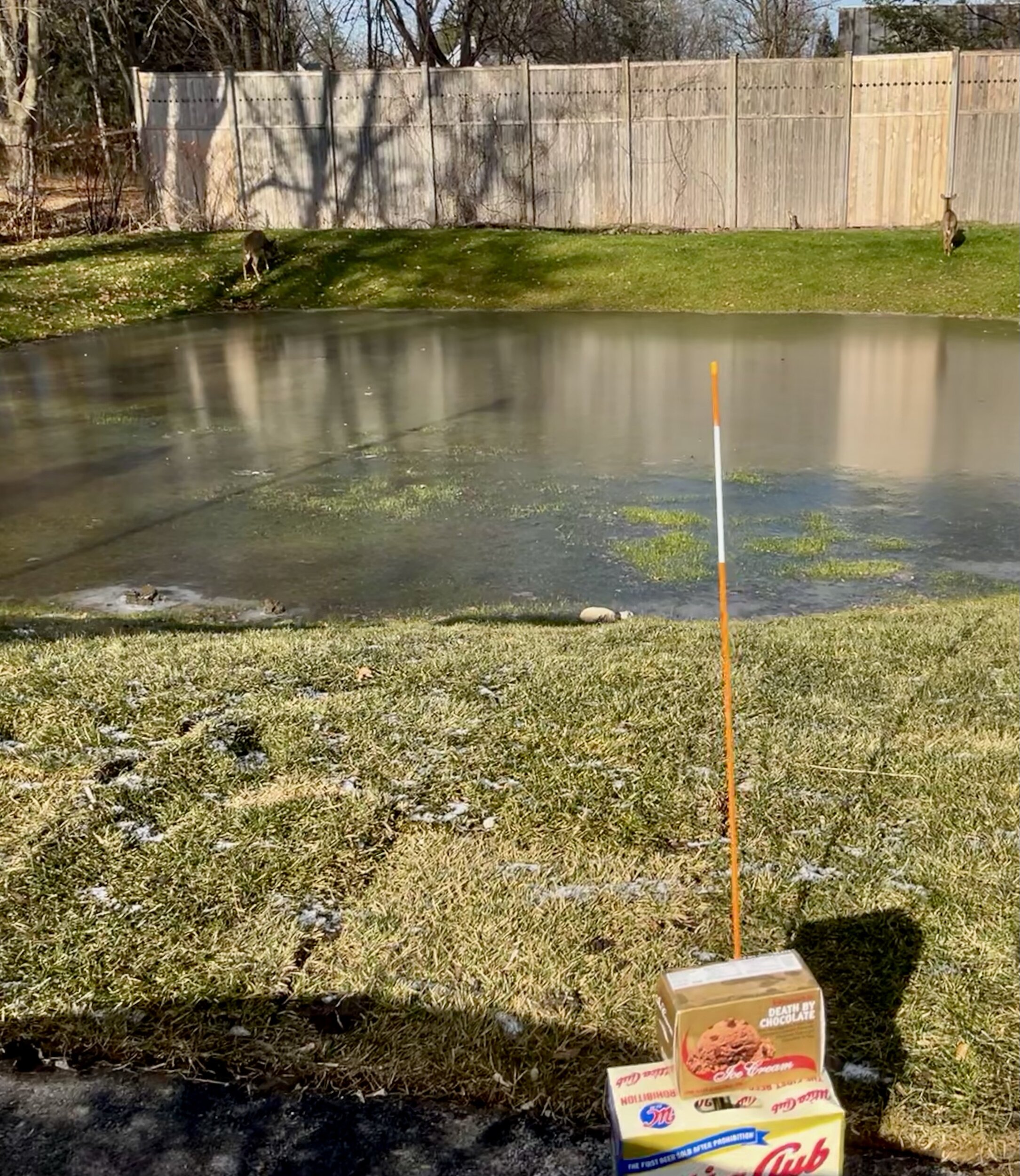 Snapped a pick of the local deer grazing on the fresh grass by their new retention pond out back yesterday.