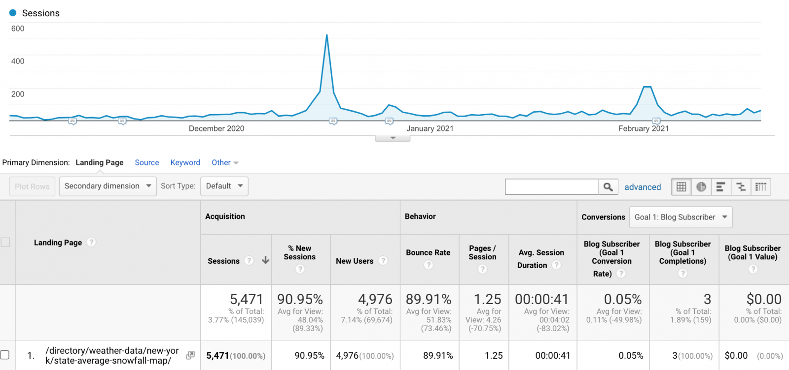 SEO Brag: That page gets a lot of traffic, biggest day was back in December before the first big storm over 500 visits in a day. Normal mid-winter day about 50 visits from google: