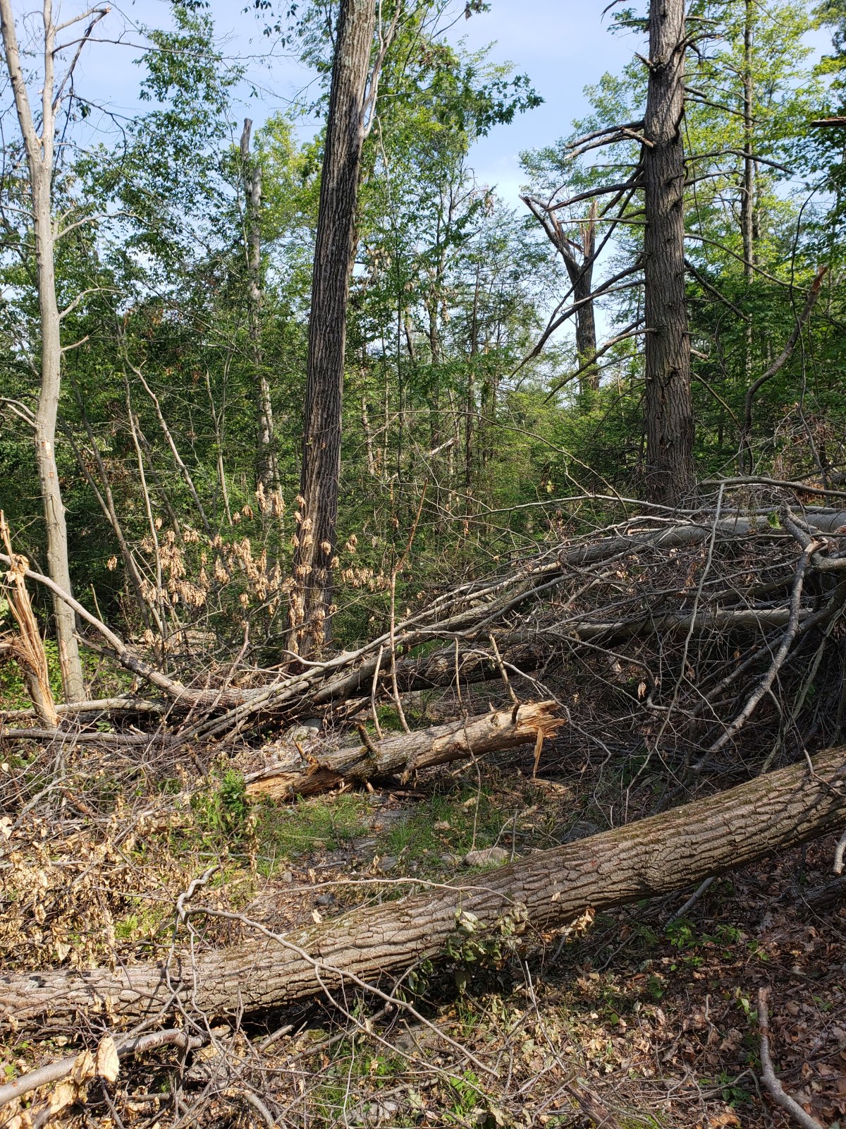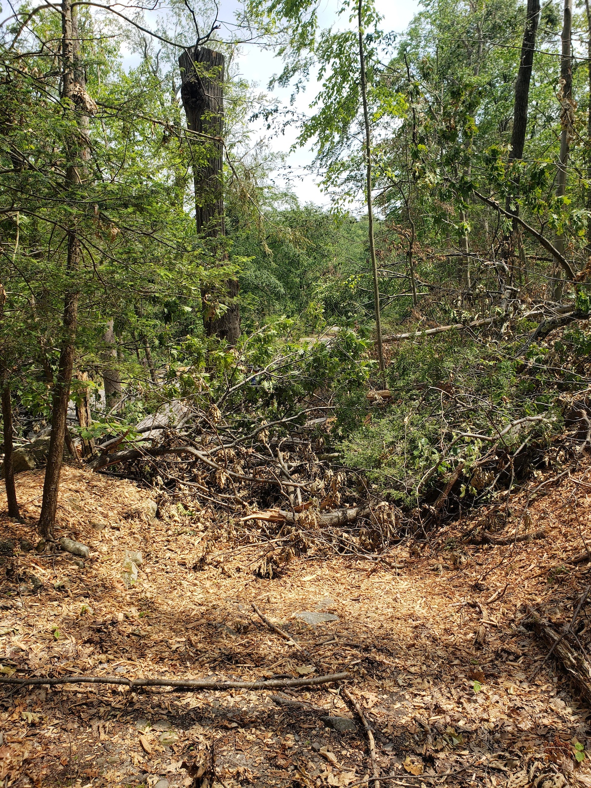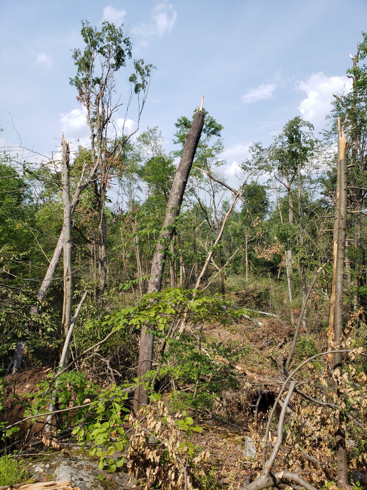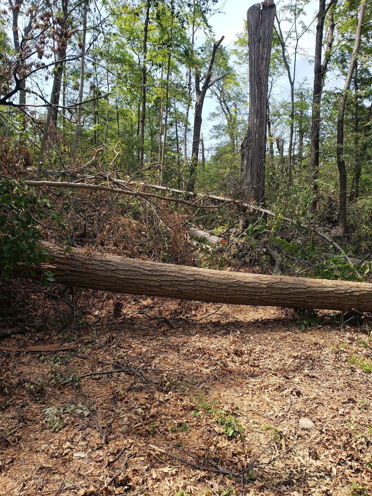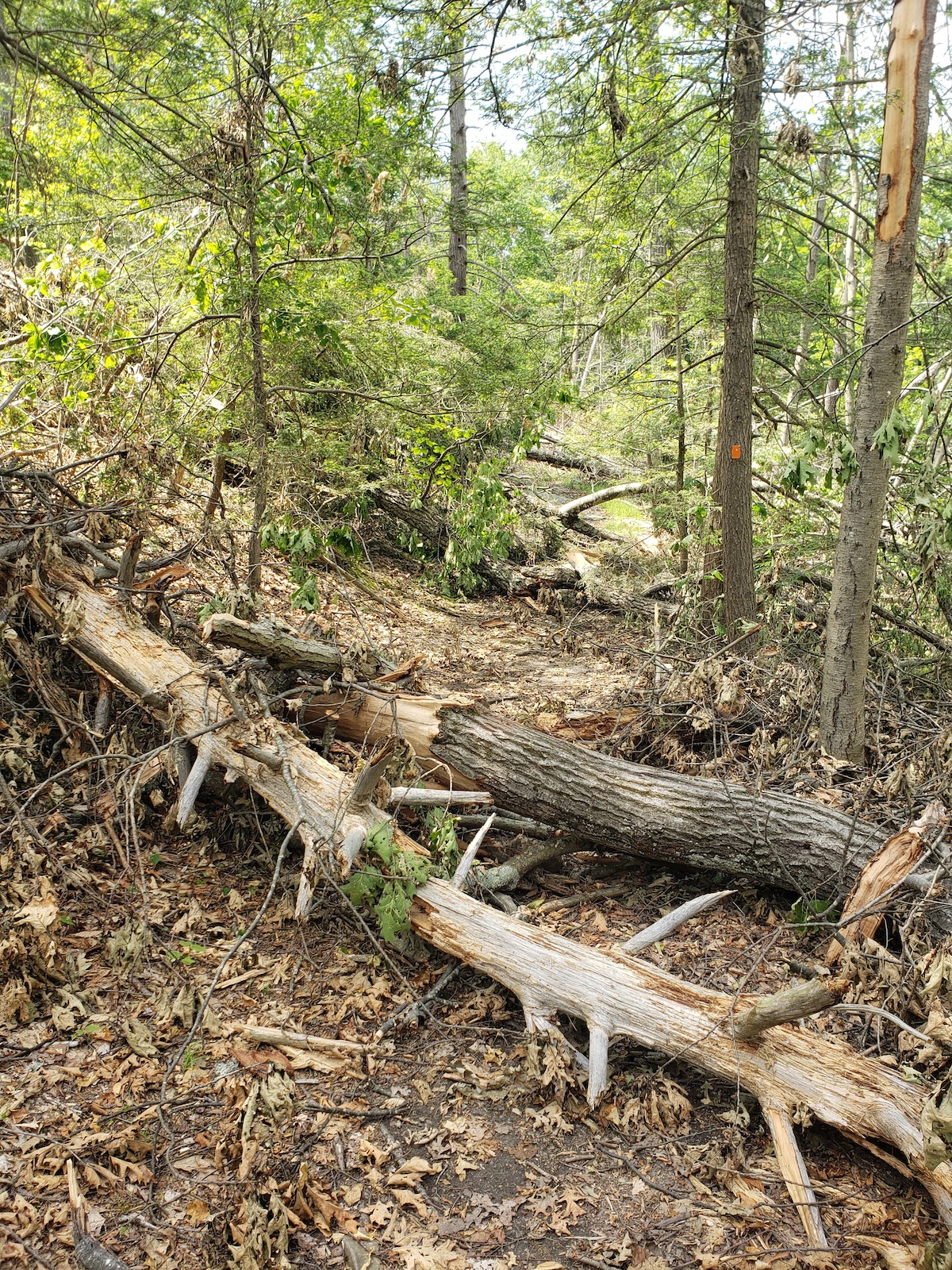 Across the road at the Sterling visitor center things are f*cked up, I was out this afternoon hand clearing and inventorying downed trees for a chainsaw session tomorrow. The storm on May 23rd was at the least a significant micro-burst and at worse a legitimate tornado. Amazing because 2 miles away on the other side of the road the MTB trail network was largely untouched.