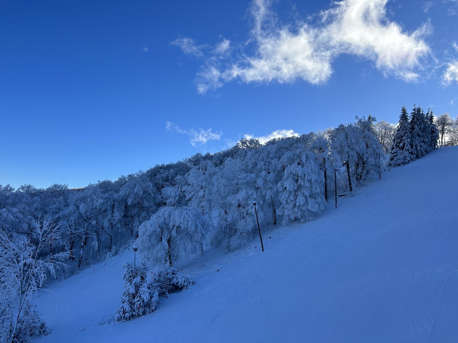 Day 14 today. I was expecting sun today but that never really happened. What did happen was a couple of inches of snow. Light and fluffy over fast and furious. They blew on Wanna and lower Yahoo all day. Be careful on the first left hander on Goat Path, lots of rocks. Area 51 was great today. Lower Belle Run was mostly boiler plate after 11. Hopeful for tomorrow, Wanna, Seneca and Dot should all be good with all the snow making they‘ve done in the last 24 hours.