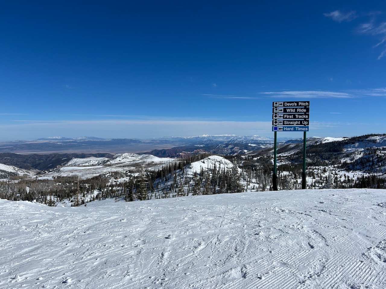 Like the rest of Utah, there wasn't much snowfall at Brian Head in January and into mid-February so it's a low snow winter. Was not quite 60% of average as of mid-March. However, there was a big, cold snowstorm that dropped over 2 feet of good snow March 13-15 just before we went. Temps stayed cold for about a week after that snow cycle.