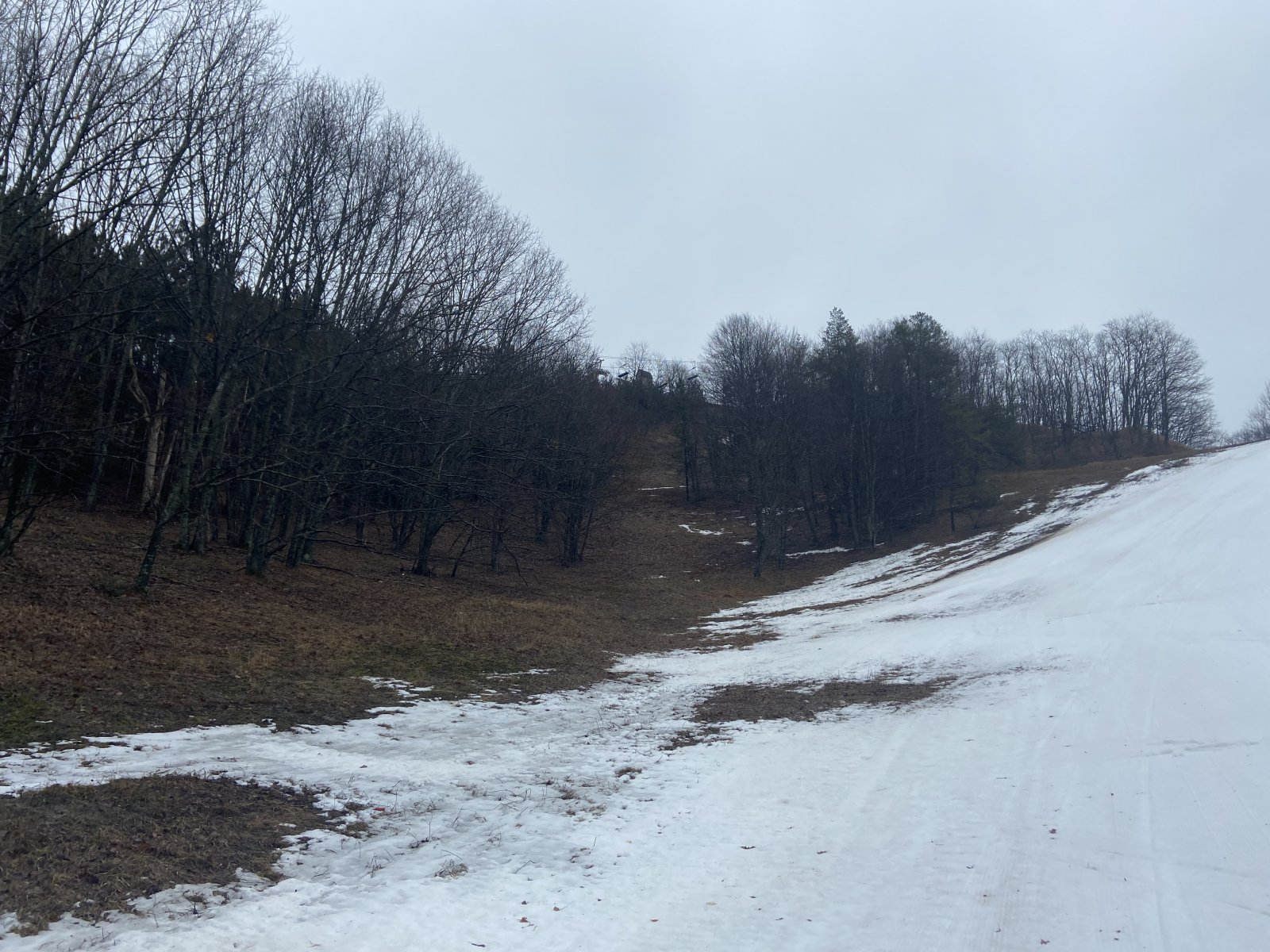 Last day to ride the repositioned from ‘67 Shelter Hall non center pole in preparation for a brand spanking new Dopp triple. Part owner Tim Meyer was walking the hill with snow makers in preparation for next year.