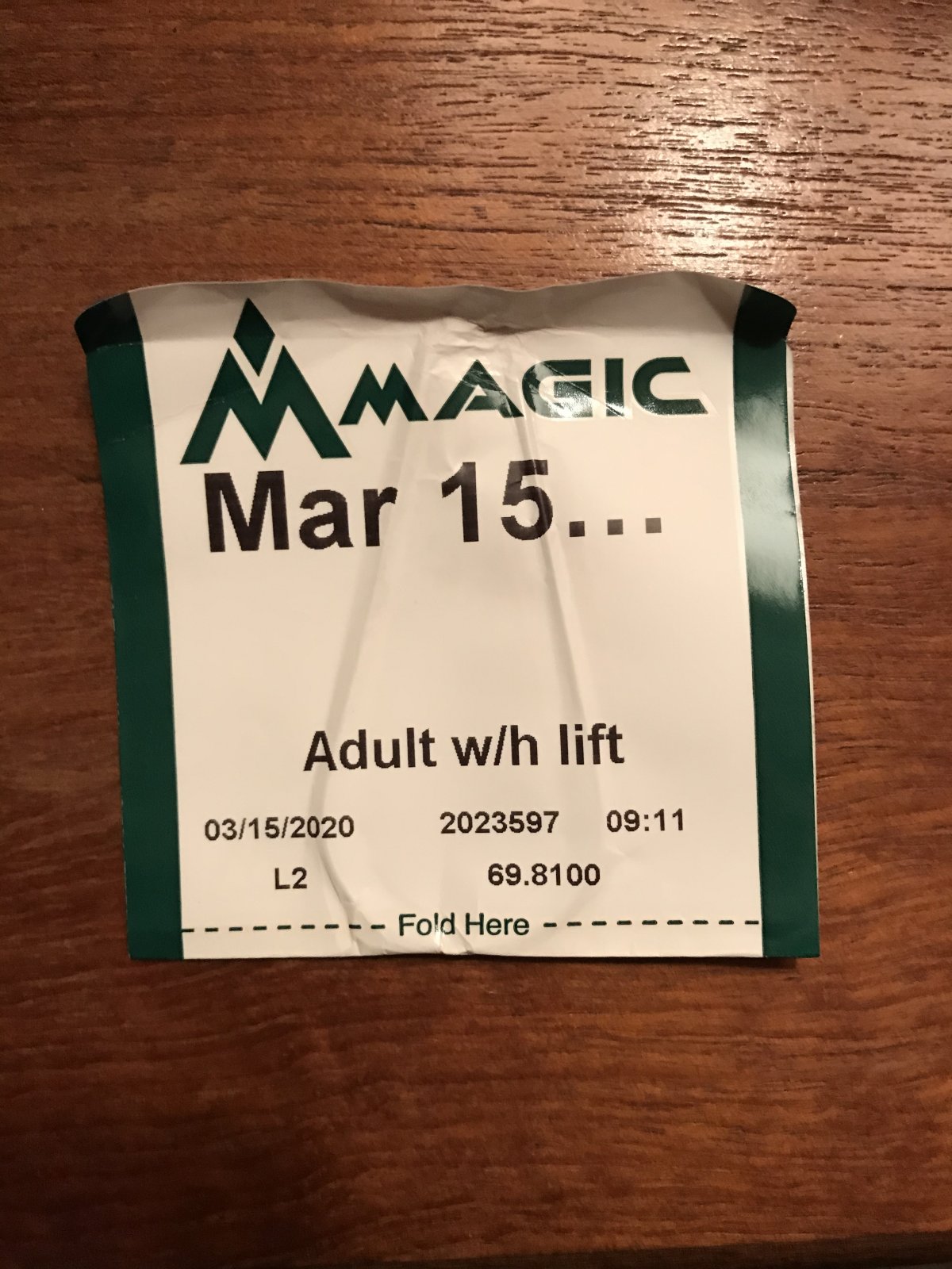 Just got my coat out for going to WF tomorrow - I’m saving this lift ticket for my grandchildren - “what were you doing when the pandemic started grandpa?”