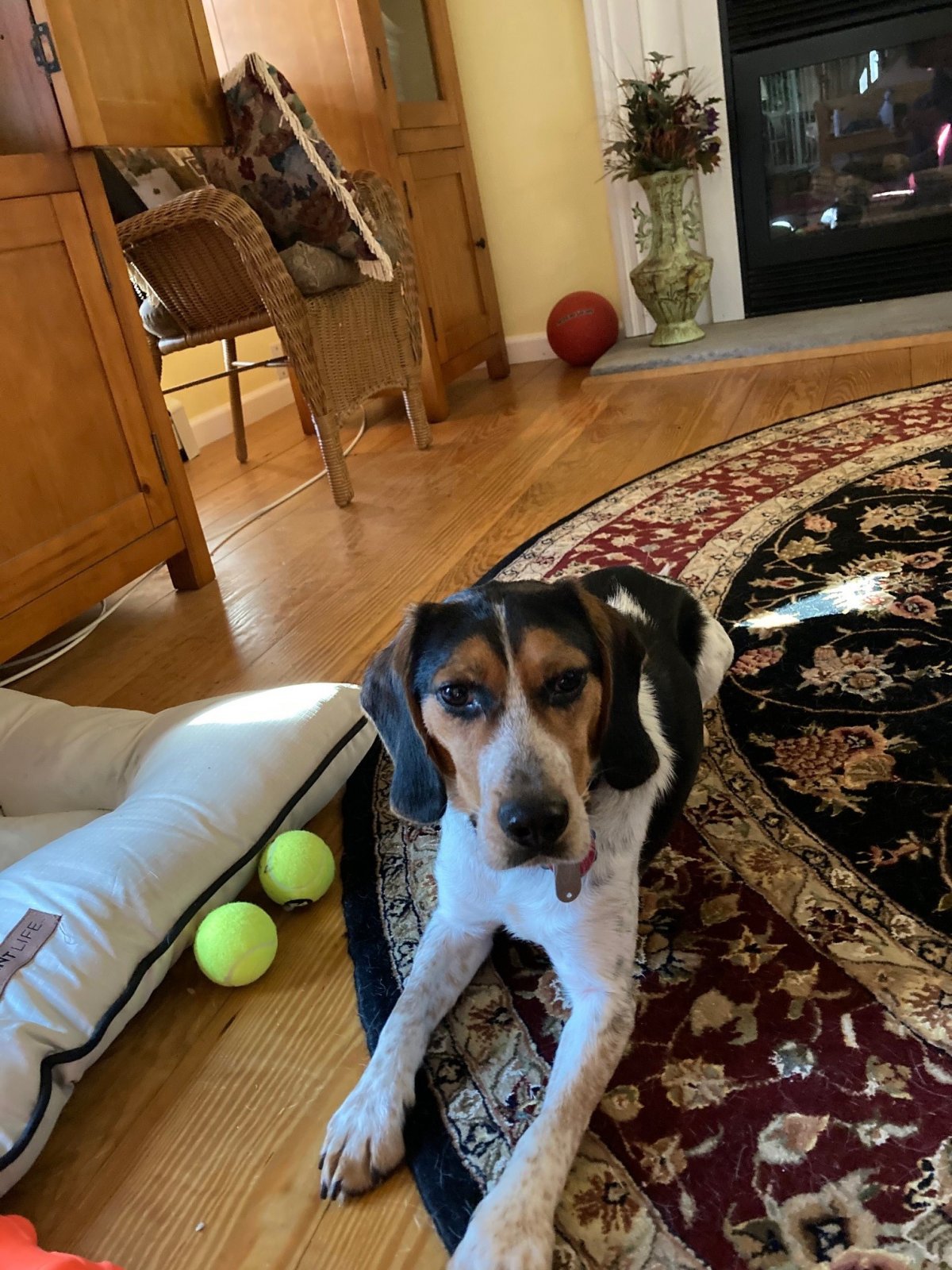 He is such a hound!This is the best I have right now. I'll get him to pose later, he's sleeping right now.