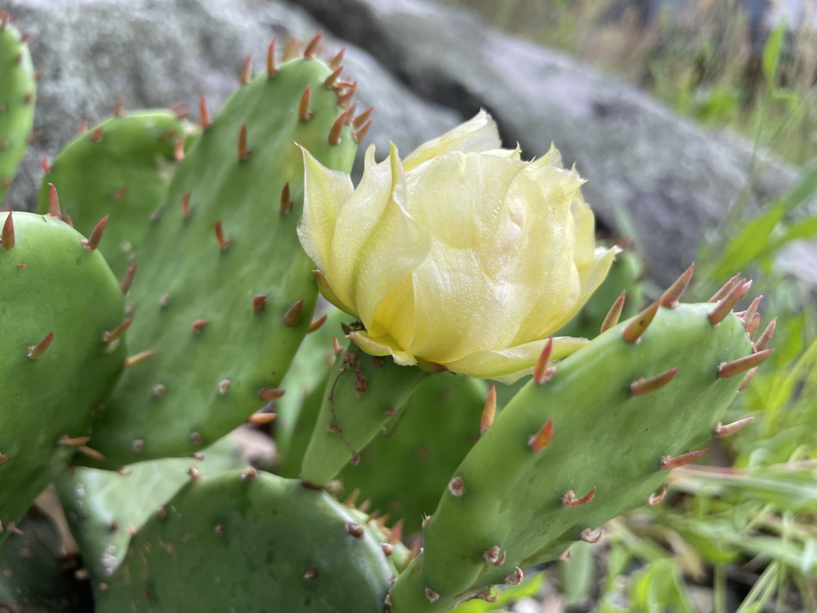 Most people don’t know cacti grow here in NY. Even as an avid gardener and native plant enthusiast, it was years before I realized it too. Up high, on the barren slopes of the Hudson Highlands, overlooking West Point, was my first natural discovery. Years later, I had the opportunity to plant some Prickly Pear, ‘Opuntia humifusa’ on private property in Garrison, which is now happy and blooming.