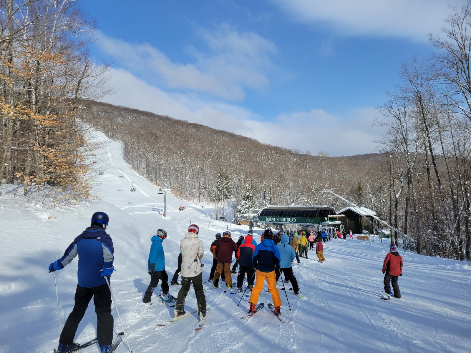 The line at Burnt Ridge happened because they opened Twisted Sister before they opened the quad. They fixed the long line at AE2 by trapping us at the bottom of the BRQ. (I'm in that picture with my son and Armon.) They should have opened High Peaks early. That would have shortened the line at the base.They also could have minimized the AE2 line by opening Cedars to BRQ at the same time as the AE2, but the top was much better than Burnt Ridge yesterday.