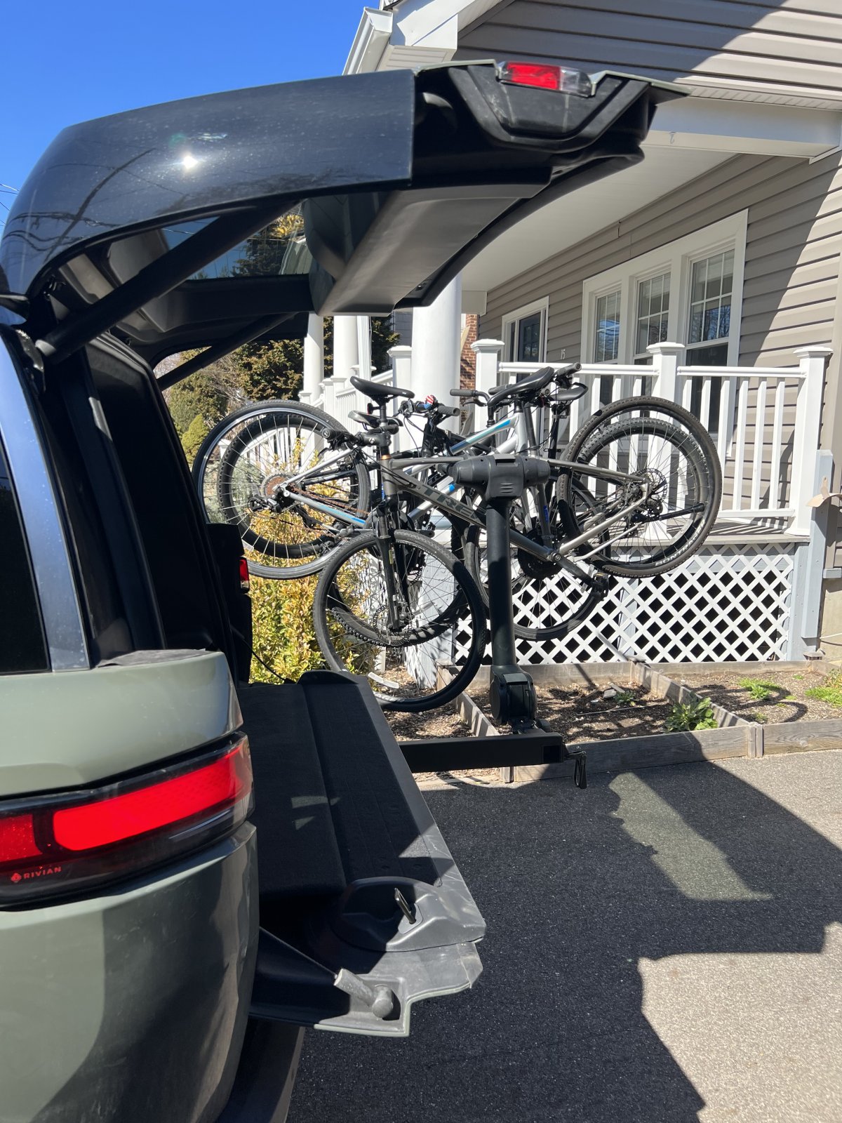 Got a Kuat pivot hitch so I can access tailgate and upper clamshell. Journeyed with wife and kids onto the ocean parkway coastal greenway for 4 miles before we called it for a knee scrape. Fun.