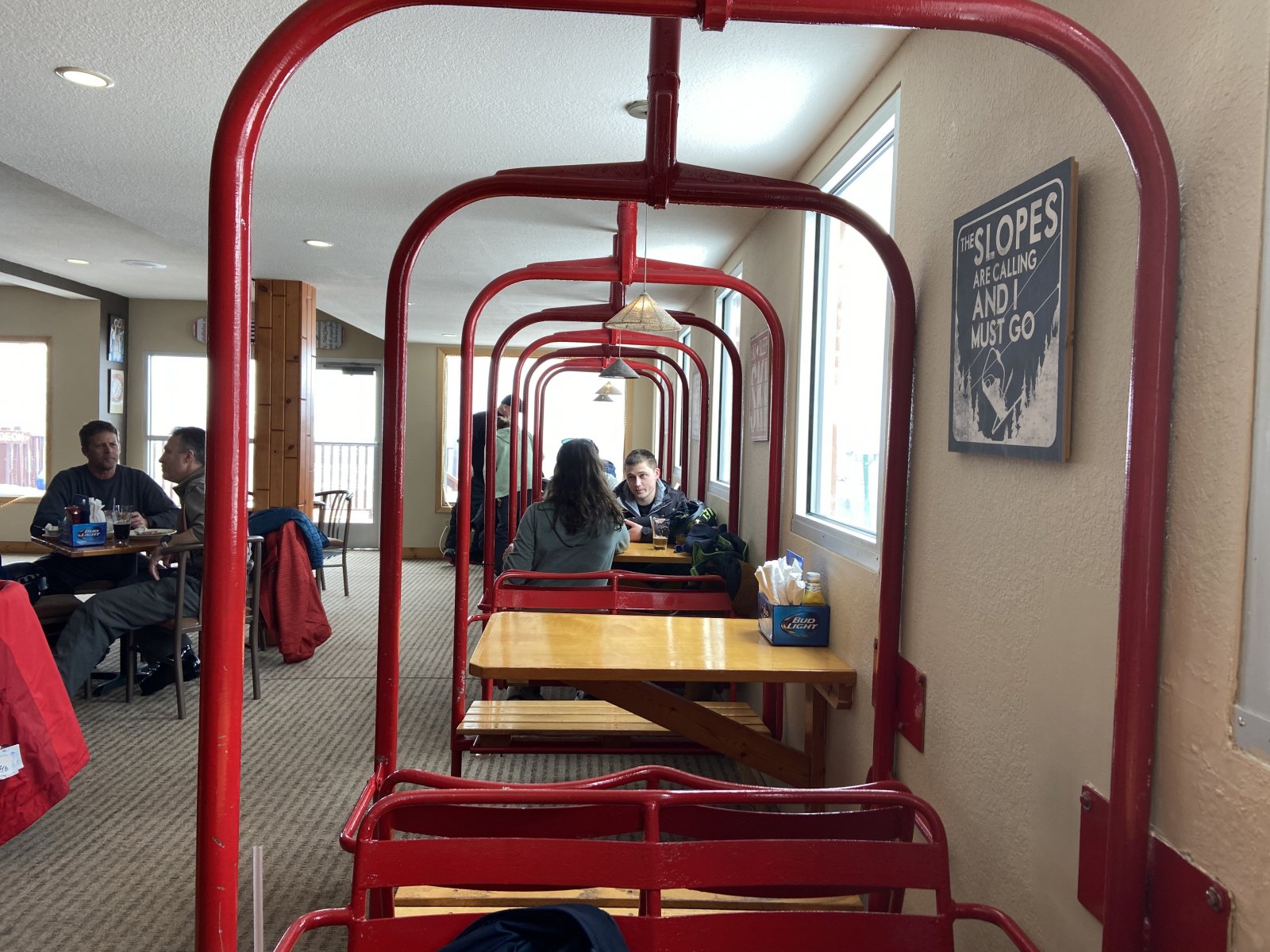In three hours we went from one end of the ski area to the other and had to do some hiking over by the Hiawatha tbar and the quad chair that’s not running to get the full perspective but it was worth it. Three double chairs get you from one end of the hill to the other all riblets.