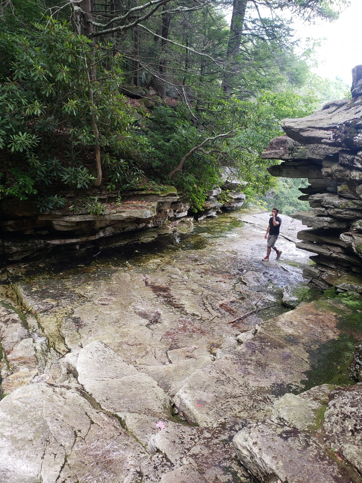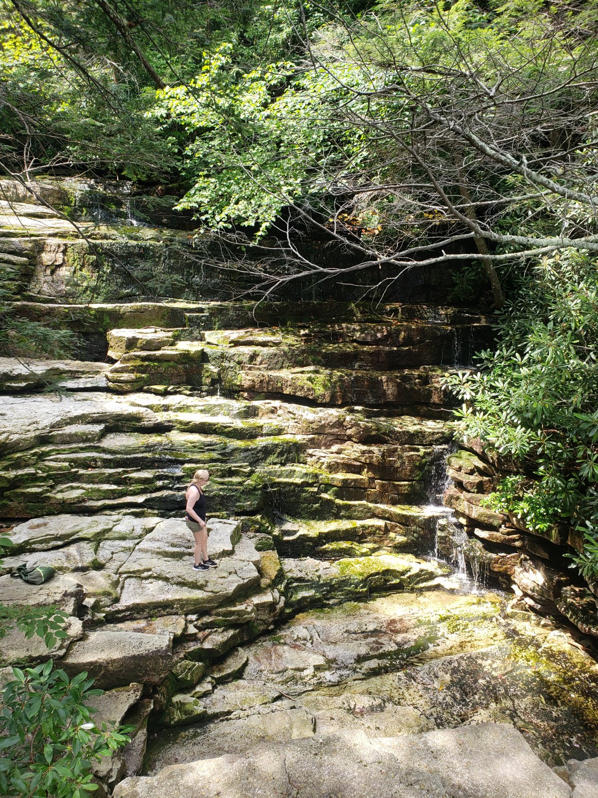 When we arrived at 10:30, there were only a dozen cars in the lower parking lot so we headed downhill to Awosting Falls. I used to go swimming here; however, they've put up a big sign saying that it's now verboten: