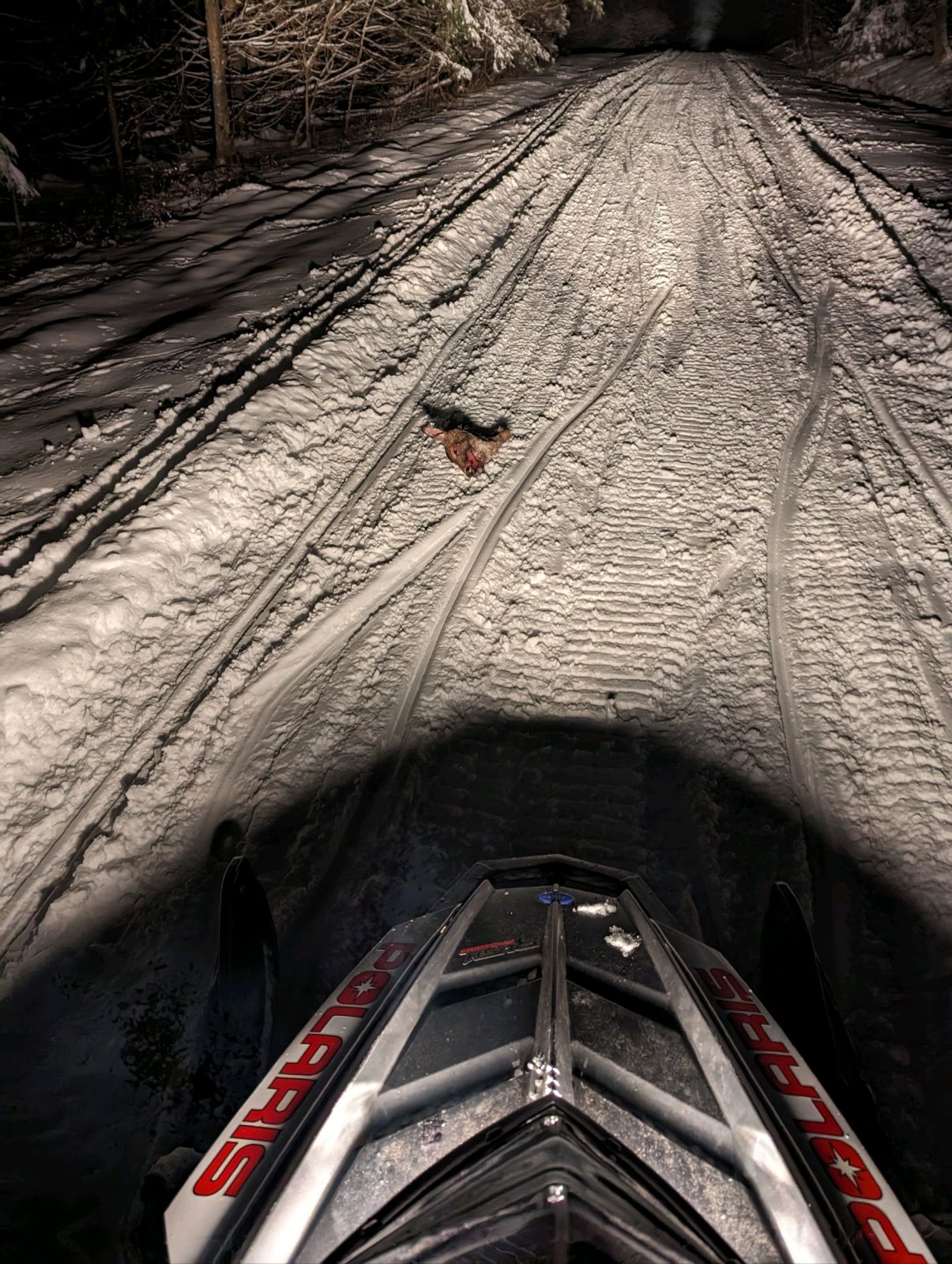 One time I was skiing in Mohonk Preserve. Just off the groomed trail was a massive red patch. Not the right shade of red to be hydraulic fluid from a groomer.... had to be blood from a large critter.I don't know. I'm guessing a coyote dragged it into the trail. I'd guess a carcass isn't too far way.
