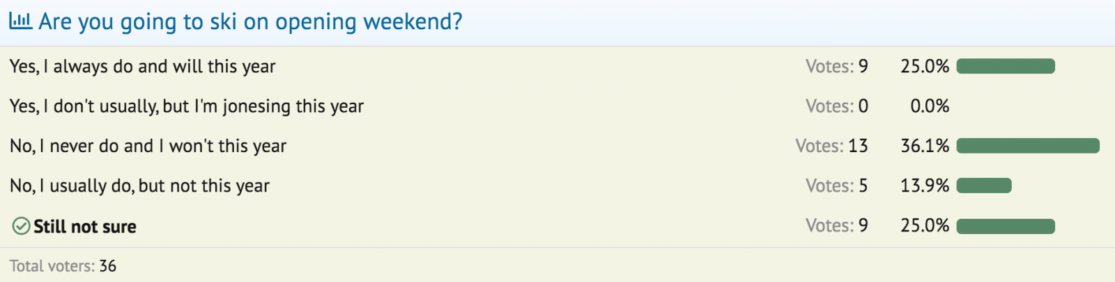 Welp, so far I think we learned that skiers and riders that normally blow off opening day, haven't changed their mind...
