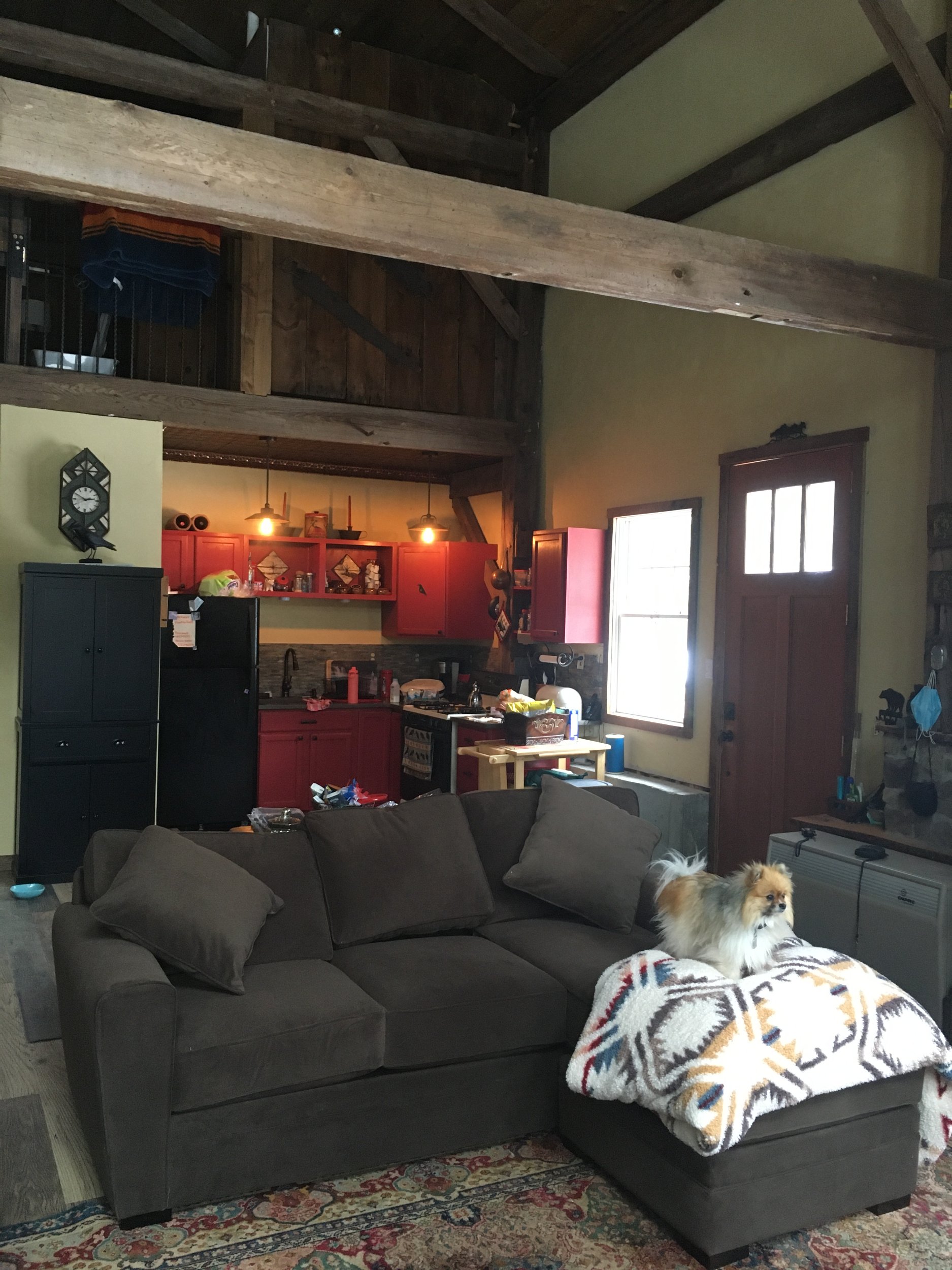 Its an Old Barn we pulled down in central NJ. Took a few years but we transported it up here and reassembled it. It was the vision of my wife and my inability to turn down a challenge. Built %95 ourselves. I had to chase my wife off the ladder at 8.5 months pregnant. My only regret was not running heat through the slab.Can we see the inside?