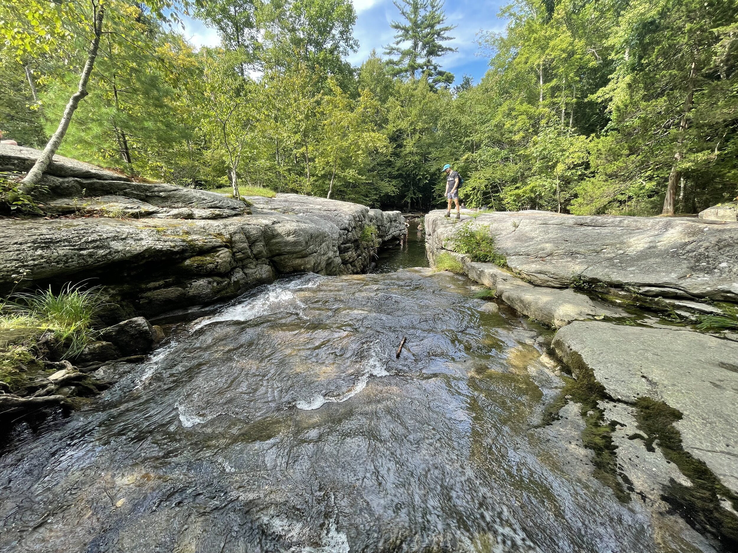 I ran pace with them on the High Peterskill section. The sun came out for a few minutes and I quickly got flushed. I crossed the Peterskill and resisted a dunk and fill up since I was carrying enough water. The climb out of there is no joke. It’s straight the f’ up, hands on knees. At this point I lost everyone and took care on the boulder filled downhill near Lost City. I ran passed checkpoint 2 at the Split Rock swimming hole and filled my bottles from the Coxingkill.