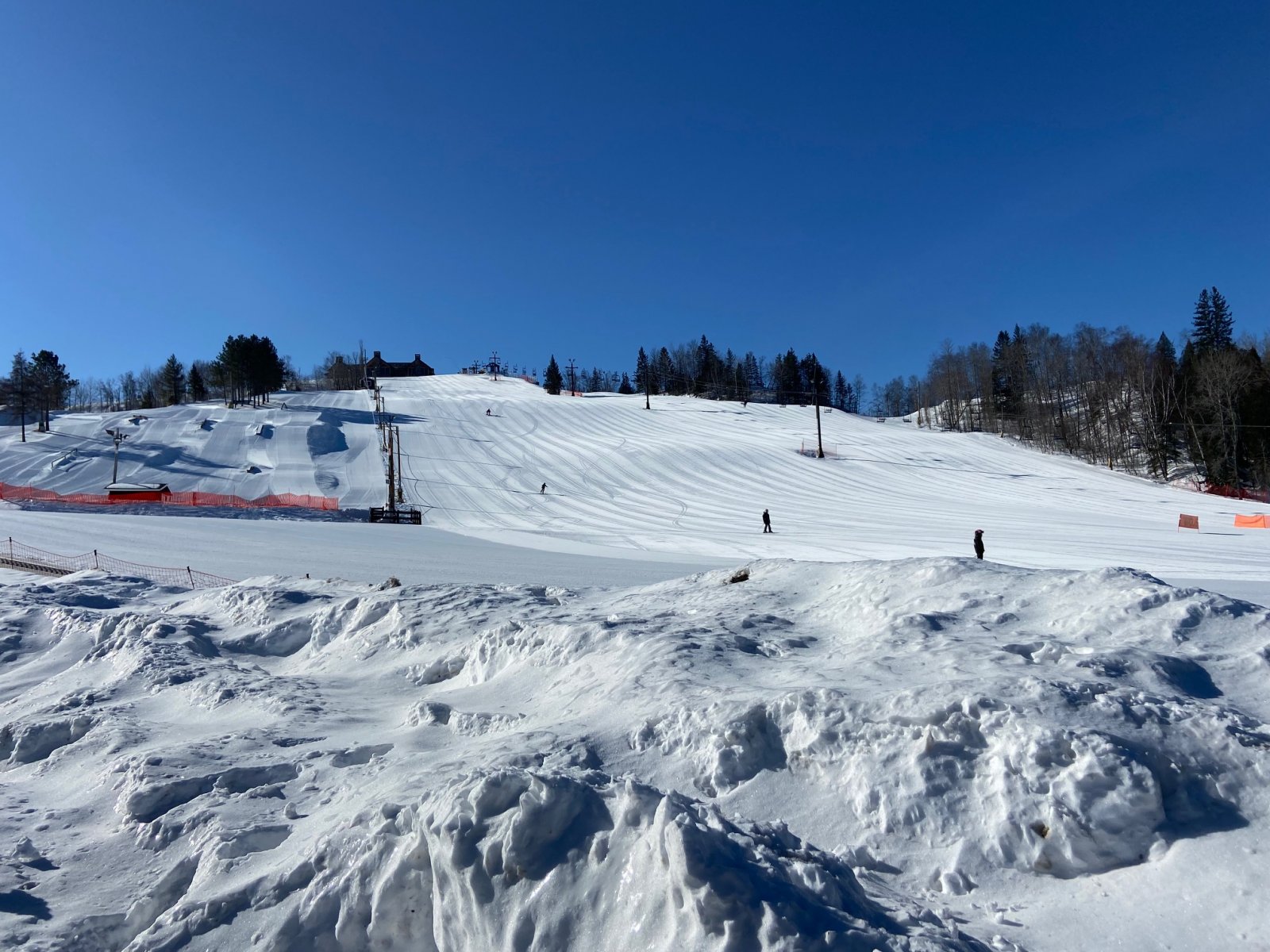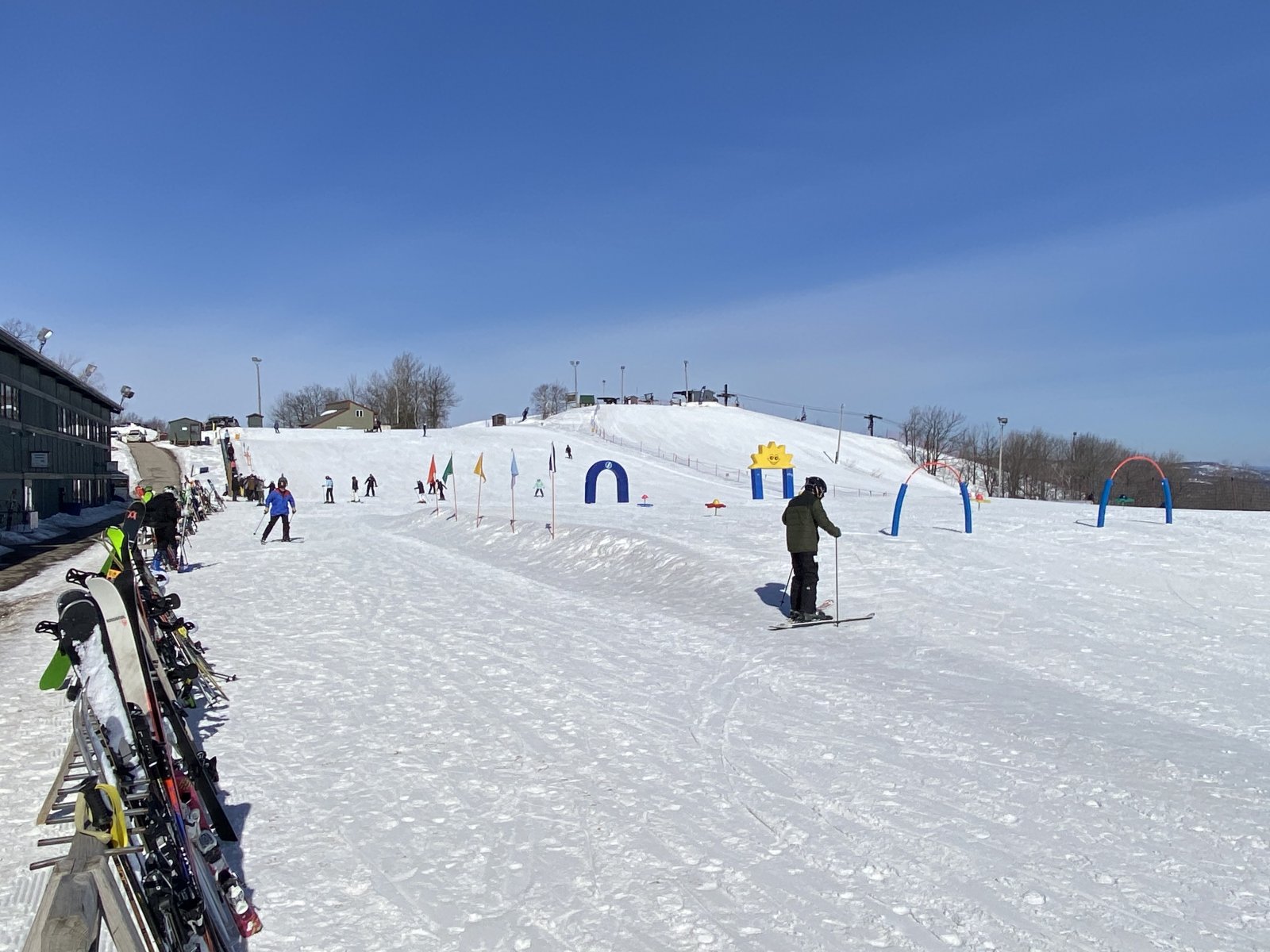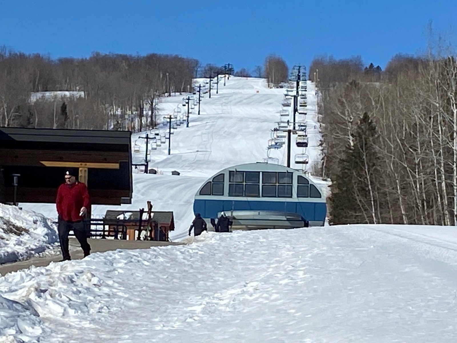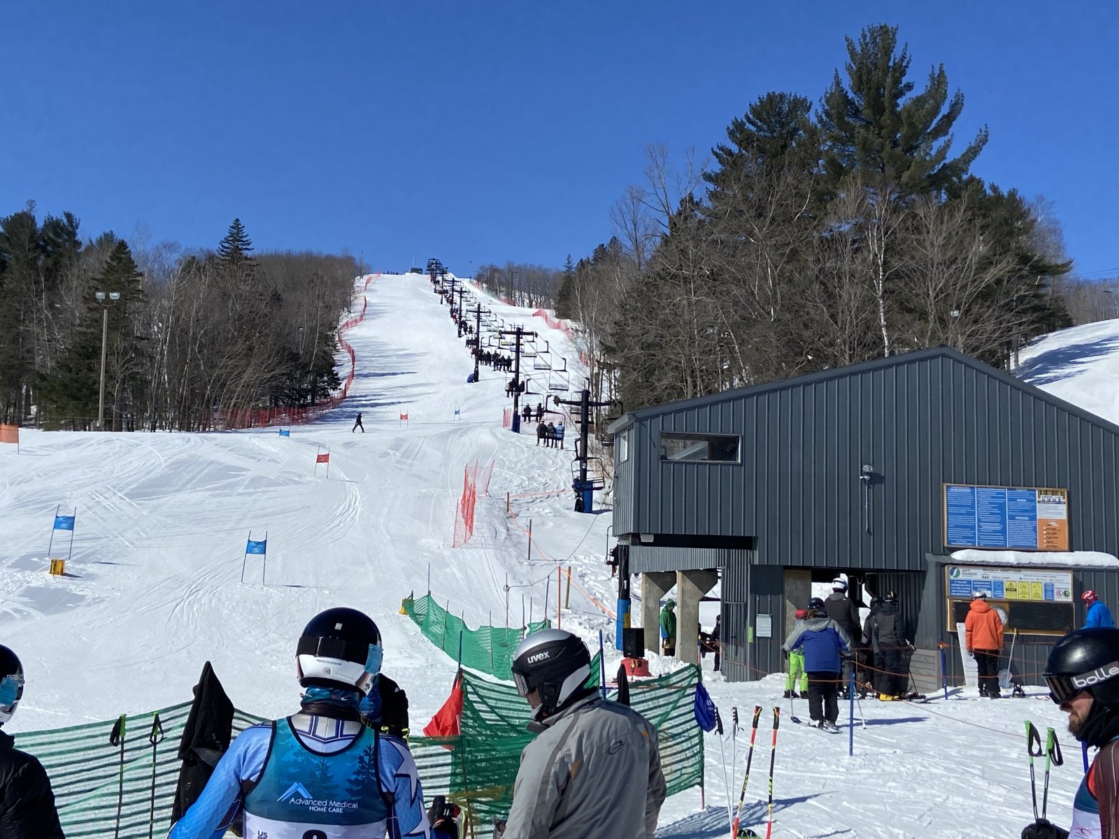 They had a good percentage of the hill closed racing today and the line for the express is about 15 minutes and they had two other lifts not operating old Hall triples which was a little discouraging but the views were fantastic,it was good to have some sunshine although it was only about 10° for a high.