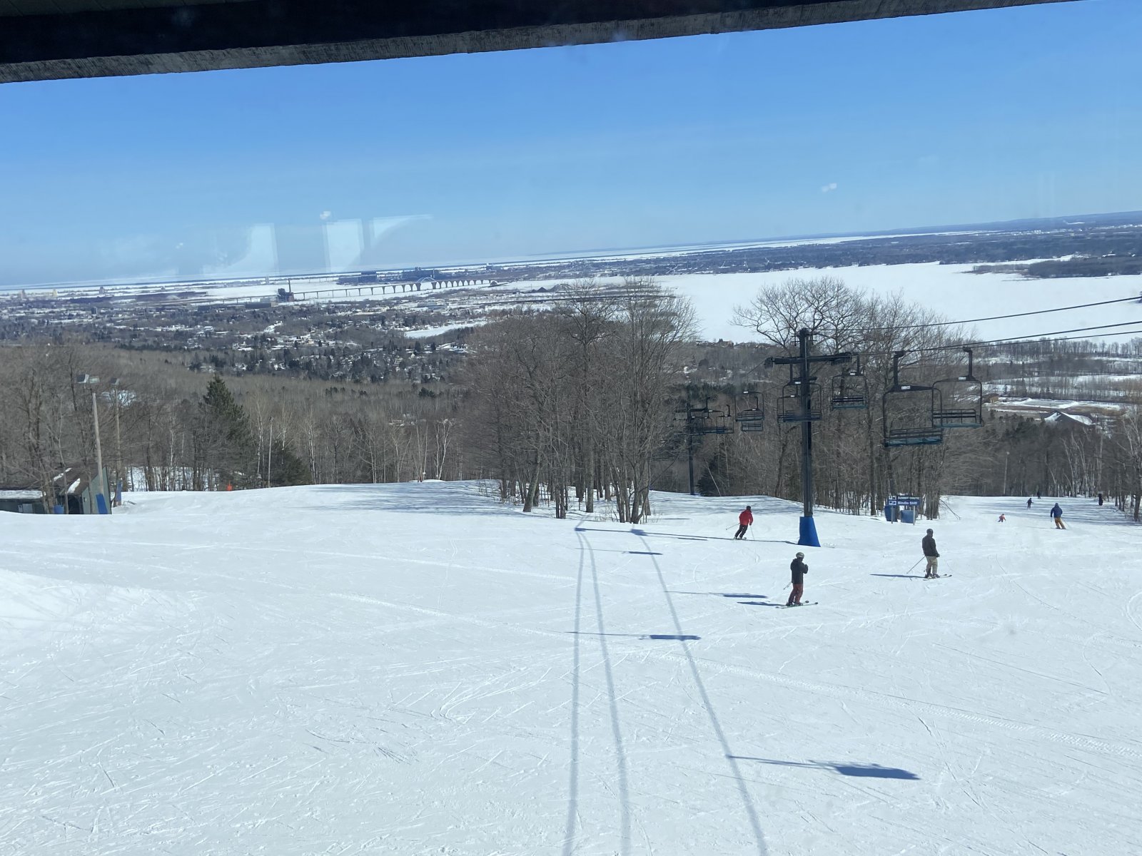 Well I finally had my first ski day in the state of Minnesota! Spirit Mountain in Duluth was a nice 700 foot vertical hill with nice grooming one high speed six pack and beautiful views of the lower left end of Lake superior. Of course it was included on the Indy pass