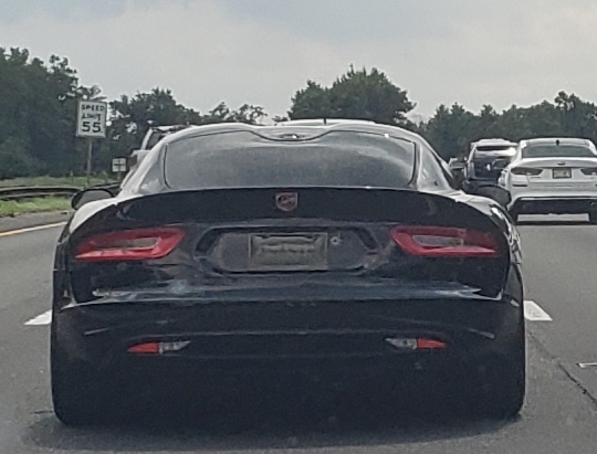 Saw this bad boy on the Parkway southbound on Saturday. Late model Viper. Sadly, too much traffic for him to get on it. Vanity tag: "Assassin."