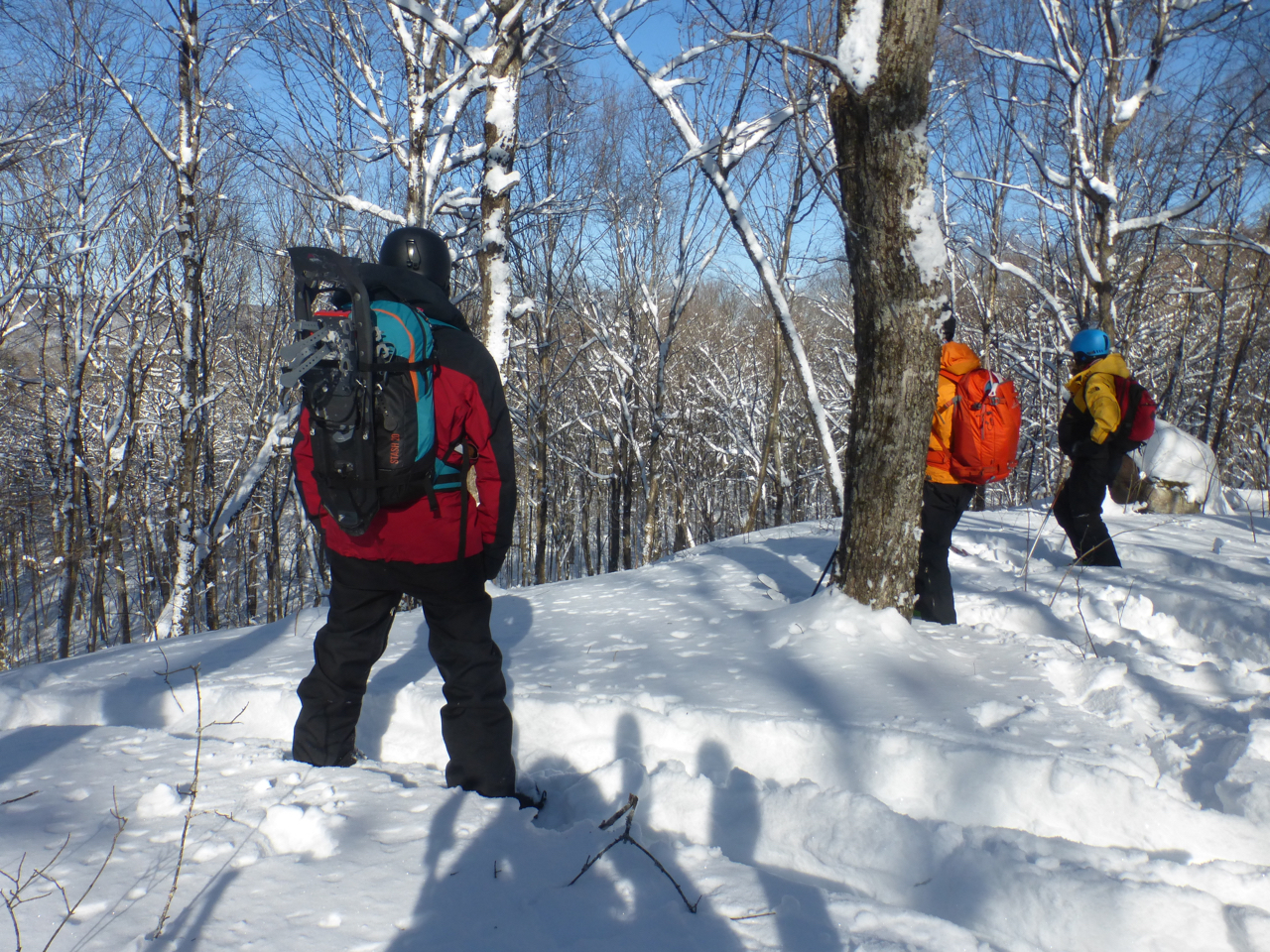 I don't have any pictures of people actually heading downhill, maybe more will pop up from others. Here we are heading uphill on a beautiful cold day: