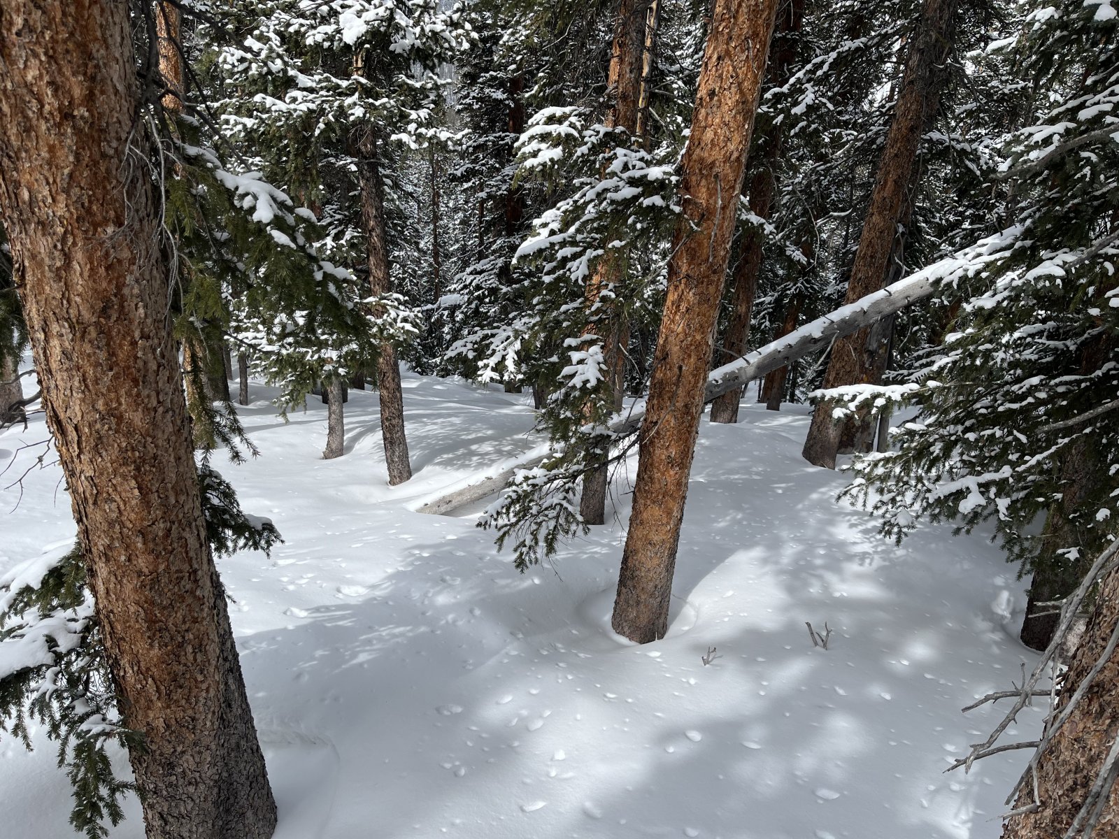 Lightning Trees didn’t disappoint. You could hit some scratchy base under some of the powder, but conditions were good. Lots of flow-y untracked lines.