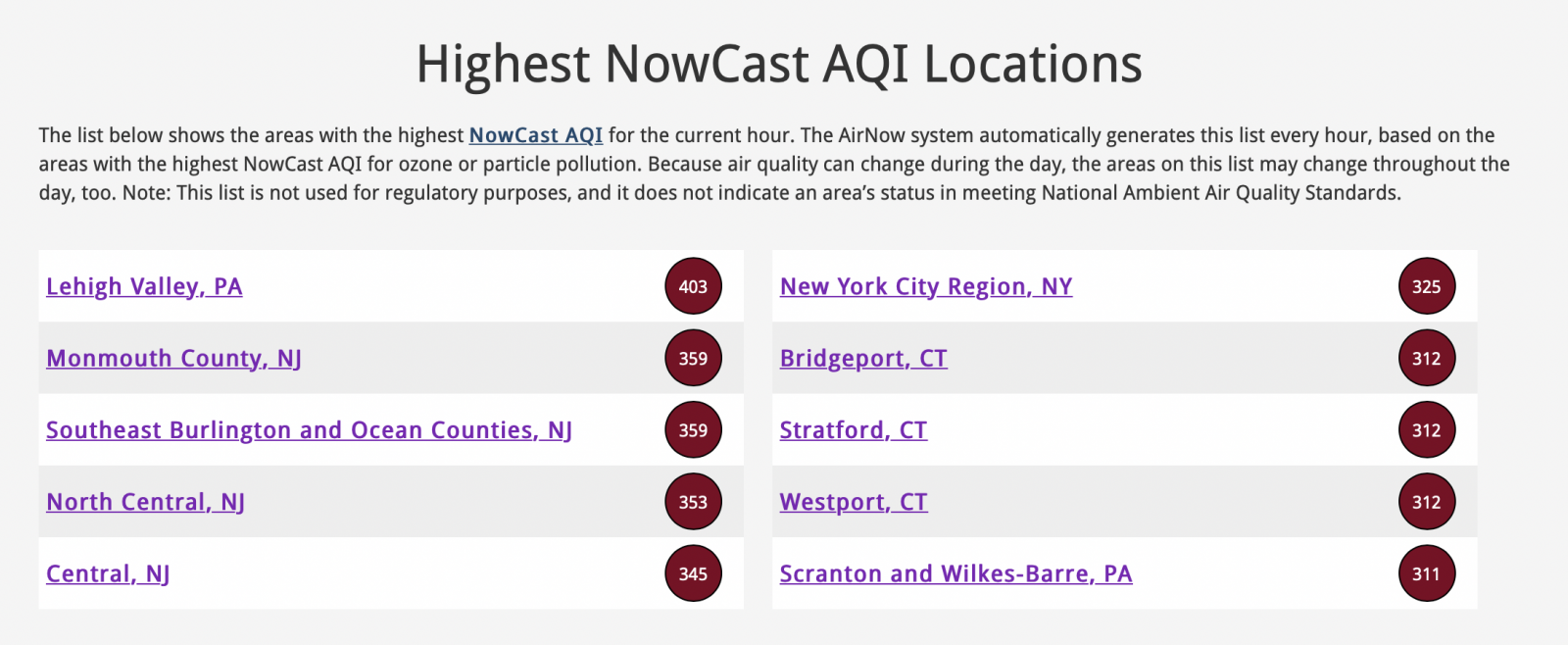 great we're number 1!Took at look at AirNow.gov for the first time. Even central NC had poor air quality today because of the fires causing smoke in the mid-Atlantic and New England.
