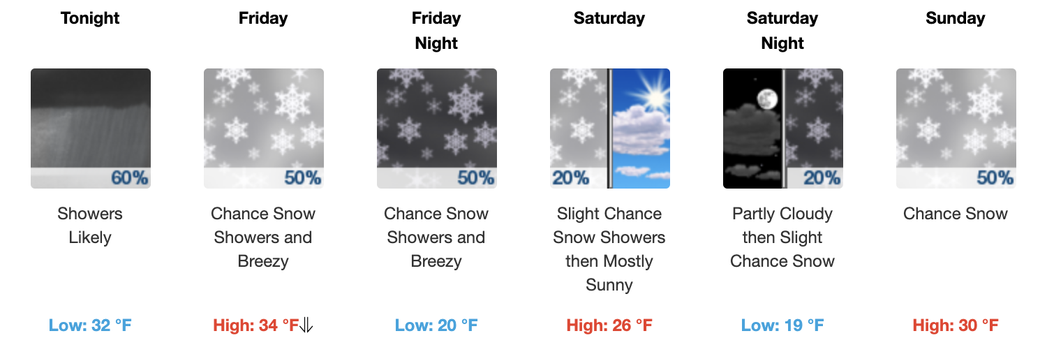 Looking at Harvey's weather links and OpenSnow I think lake effect may help HV more than Bristol starting tomorrow giving HV an edge. Though I think Bristol has a lower threshold and will open with 1 ribbon of snow on Rocket or SunsetTemps have been too warm for much snowmaking. Bristol usually tries to be first, so unless HV gets a dump off Lake Erie, that's probably what will happen.