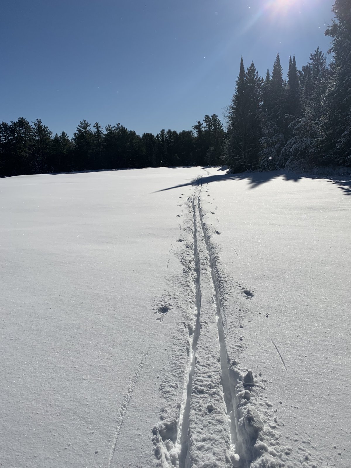 Bonnies first tracks on the golf course.. we have about 8-10” of snow on the ground. A good start, but certainly limits skiing to safe places with a fast grass base for the time being.